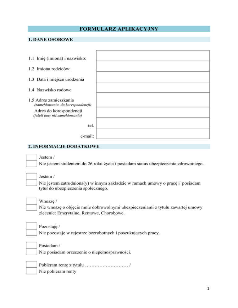 Formularz aplikacyjny PDF