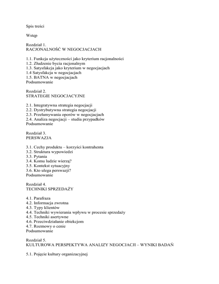 Spis treści Wstęp Rozdział 1. RACJONALNOŚĆ W
