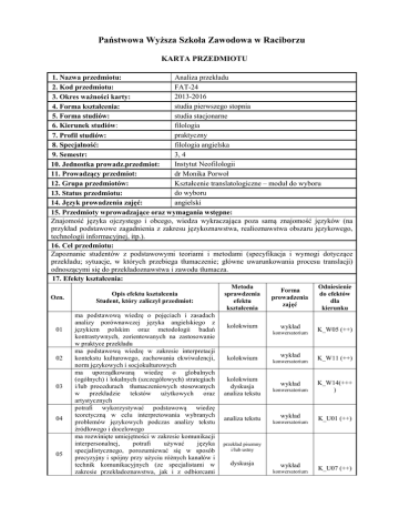 KT Analiza przekładu - Państwowa Wyższa Szkoła Zawodowa w