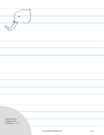Narysuj słonia według wzoru. Odszukaj „j” i „J”. www.figlarnakredka.com © MC