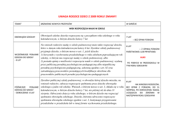 uwaga rodzice dzieci z 2009 roku! zmiany!