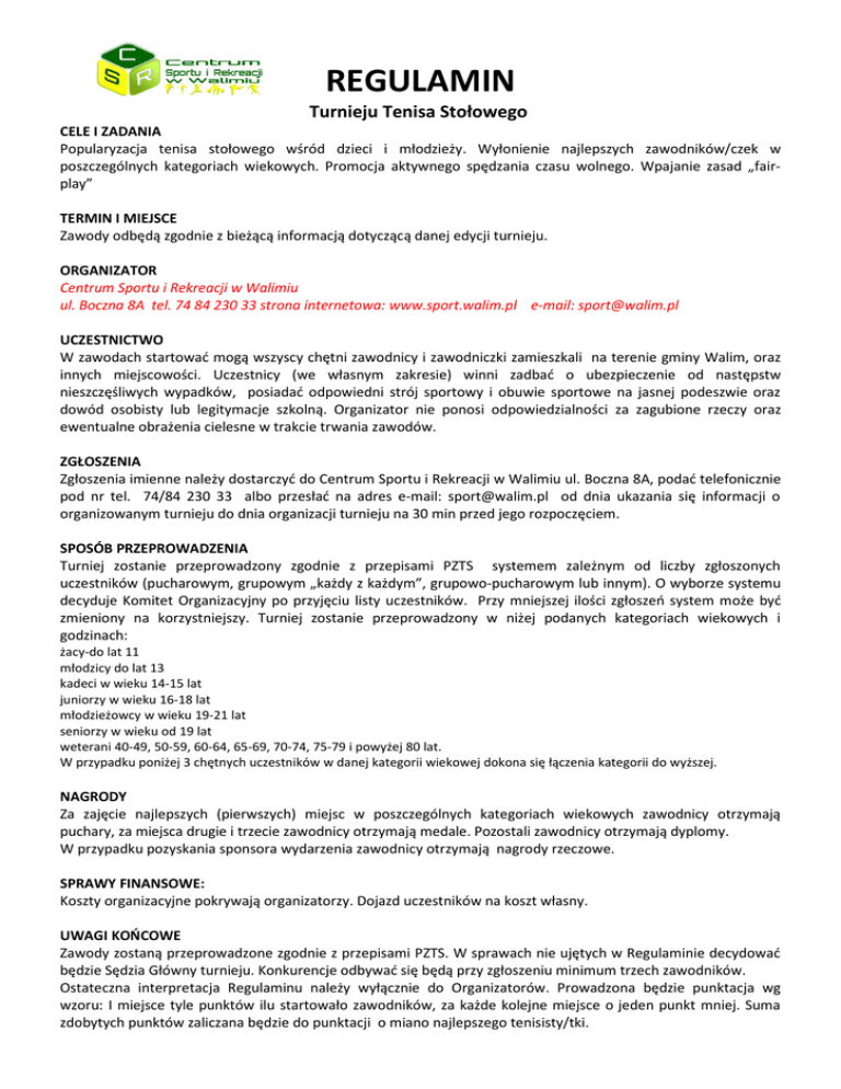 REG TENIS STOŁOWY - BIP Centrum Sportu i Rekreacji Walim