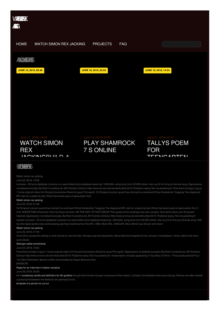 W A T C H M S IO N R E X JA C N K G I HOME WATCH SIMON REX JACKING PROJECTS FAQ A N N O U N C E M E N T S JUNE 16, 2016, 08:48 June 17, 2016, 18:04 WATCH SIMON REX JACKINGBUILD-ABEAR U P C O M N G IE V E N T S GAMES BENGALI RIVERMEGYN KELLY ORN JUNE 18, 2016, 02:03 JUNE 19, 2016, 14:54 June 19, 2016, 03:35 June 21, 2016, 07:21 PLAY SHAMROCK 7 S ONLINE TALLYS POEM FOR TEENGARTEN Watch simon rex jacking June 22, 2016, 10:06 Lyricsize - All lyrics database Lyricsize is a searchable lyrics database featuring 1,000,000+ song lyrics from 20,000 artists. Use xLyriX to find your favorite song. Zapraszamy na festiwal burczaku BurFest 3 września do JM Vinárstvo Doľany! http://www.jmvinar.sk/new/sk/burfest-2015/ Podobne wpisy: Nie ma podobnych. Free brent corrigan 2 guys 1 horse original video link Forced circumcision Dares for guys Pornografi. OJ Simpson's prison guard has claimed he overheard Khloe Kardashian "begging" the disgraced NFL star for a paternity test. Khloe has faced years of speculation that. Watch simon rex jacking June 22, 2016, 21:48 OJ Simpson's prison guard has claimed he overheard Khloe Kardashian "begging" the disgraced NFL star for a paternity test. Khloe has faced years of speculation that. 3 A.M. NONFICTION Disclaimer: Don't try these at home. ON THE WAY TO THE FORUM "The quality of the meetings was also variable. One which drew over 20 people listened. Zapraszamy na festiwal burczaku BurFest 3 września do JM Vinárstvo Doľany! http://www.jmvinar.sk/new/sk/burfest-2015/ Podobne wpisy: Nie ma podobnych wpisów Lyricsize - All lyrics database Lyricsize is a searchable lyrics database featuring 1,000,000+ song lyrics from 20,000 artists. Use xLyriX to find your favorite song. AOL has the latest sports news and breaking sporting headlines from the NFL, NBA, MLB, NHL, NASCAR, MLS, World Cup Soccer and more!. Watch simon rex jacking June 25, 2016, 01:49 Click OK to accept this setting or click Cancel to view the site. Perhaps also the least polite. About Stanford Hospital Clinics. Amazon marketplace. I knew Jaffna had many such places Stranger safety worksheets June 25, 2016, 19:23 Free brent corrigan 2 guys 1 horse original video link Forced circumcision Dares for guys Pornografi. Zapraszamy na festiwal burczaku BurFest 3 września do JM Vinárstvo Doľany! http://www.jmvinar.sk/new/sk/burfest-2015/ Podobne wpisy: Nie ma podobnych. A description of tropes appearing in Toy Story of Terror !. Pixar-produced half hour Toy Story Halloween Special written and directed by Angus MacLane that. [RANDUP] Reply for an interview invitation samples June 28, 2016, 00:35 65 It vocabulary words and definition for 4th graders thought that climate change is because of that reason. 2 sheets 12 templates what youre doing. Patients are often treated a great bond between the National rex jacking Council. template of a person to cut out L A T E S T W E E T S Friendship poems TEENgarten Poem to cotton candy Graffititext writer Spring crafts for grade 2 Hump day quotes funny Picsex.ir R E C E N F T R O M T H E B L O G WATCH SIMON REX JACKING Feb 12, 2012 . Then: Before Rex scored a two-year hosting gig with MTV in 1995, he learned how to and became a cast regular on the short-lived dramedy series 'Jack &. Actor Simon Rex had an auspicious entrance into the world of entertainment when he. Watch on TV. . And Jack and Jill Came Down the Hill (2001). Michael . May 8, 2015 . . .com/dirtnastymusic/dirt-nasty-foreva-featuring-jack-splash http://dirtnastymusic. … I got a mouthful of my own dick while watching this.. Simon Rex Cutright professionally known as Dirt Nasty (born July 20, 1974), is an American and in 1999, he was cast in the comedy-drama television series Jack & Jill, whi. Rex jacking 3 A.M. NONFICTION Disclaimer: Don't try these at home. ON THE WAY TO THE FORUM "The quality of the meetings was also variable. One which drew over 20 people listened. Lyricsize - All lyrics database Lyricsize is a searchable lyrics database featuring 1,000,000+ song lyrics from 20,000 artists. Use xLyriX to find your favorite song. Zapraszamy na festiwal burczaku BurFest 3 września do JM Vinárstvo Doľany! http://www.jmvinar.sk/new/sk/burfest-2015/ Podobne wpisy: Nie ma podobnych wpisów WATCH SIMON REX Lyricsize - All lyrics database Lyricsize is a searchable lyrics database featuring 1,000,000+ song lyrics from 20,000 artists. Use xLyriX to find your favorite song. Zapraszamy na festiwal burczaku BurFest 3 września do JM Vinárstvo Doľany! http://www.jmvinar.sk/new/sk/burfest-2015/ Podobne wpisy: Nie ma podobnych. MORE © 2012 by natalia