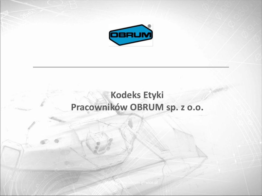 Kodeks Etyki Pracowników OBRUM sp. z o.o. 2015Ggwww.obrum.gliwice.pl Preambuła W OBRUM sp. z o.o. obowiązuje Kodeks Etyki Pracowników, jego celem jest wyznaczenie właściwego kierunku rozwoju kultury organizacyjnej w Ośrodku zarówno w relacjach międzypracowniczych, jak również w relacjach zewnętrznych z Interesariuszami Spółki. Stałe przestrzeganie zasad i wartości etycznych jest podstawowym źródłem sukcesu firmy, umożliwiającym z jednej strony budowę pozytywnego wizerunku Spółki na rynku, a z drugiej – wzmocnienie identyfikacji Pracowników ze Spółką, dzięki czemu wzrasta efektywność wykonywanej przez nich pracy. Niniejszy Kodeks Etyki Pracowników OBRUM sp. z o.o. jest jednym z elementów mających zapewnić stałe doskonalenie jakości funkcjonowania Spółki. Kodeks obejmuje główne zasady i standardy postępowania Pracowników OBRUM sp. z o.o. w zakresie szeroko rozumianej etyki zawodowej i społecznej, zapewniające wypełnienie misji Spółki oraz realizację jej strategii rozwoju, jak również zadowolenie Klientów. Niniejszy Kodeks został opracowany na podstawie ogólnie przyjętych zasad współżycia społecznego, których przestrzeganie stanowi jeden z podstawowych obowiązków Pracownika zgodnie z art. 100 § 2 pkt 6 ustawy z dnia 26 czerwca 1974 r. Kodeks pracy (tekst jednolity Dz. U. z 2014 r., poz. 1502 z późn. zm.). Spółka kieruje się zasadą poszanowania godności każdego człowieka i jego dóbr osobistych, tym samym deklarując szacunek dla narodowości, rasy, religii, płci oraz orientacji politycznej swoich Pracowników, Współpracowników, Klientów i Kontrahentów. Definicje Informacje niejawne - dokument lub materiał, którego nieuprawnione ujawnienie spowodowałoby lub mogłoby spowodować szkody Rzeczypospolitej Polskiej albo byłoby z punktu widzenia jej interesów niekorzystne, także w trakcie ich opracowywania oraz niezależnie od formy i sposobu ich wyrażania, zgodnie z ustawą z dnia 5 sierpnia 2010 r. o ochronie informacji niejawnych (Dz. U. Nr 182, poz. 1228 z późn. zm.). Tajemnica przedsiębiorstwa - nieujawnione do wiadomości publicznej informacje techniczne, technologiczne, organizacyjne przedsiębiorstwa lub inne informacje posiadające wartość gospodarczą, co do których przedsiębiorca podjął niezbędne działania w celu zachowania ich poufności, zgodnie z ustawą z dnia 16 kwietnia 1993 r. o zwalczaniu nieuczciwej konkurencji (tekst jednolity Dz. U. z 2003 r., Nr 153, poz. 1503 z późn. zm.). Interesariusz – osoba, bądź podmiot zainteresowany działalnością Spółki i ponoszący różnego typu ryzyko związane z jej funkcjonowaniem; Interesariusze to grupa obejmująca m.in. udziałowców, pracowników, klientów, kredytodawców, dostawców Spółki, a w szerszym kontekście - również społeczność lokalną. Klient – odbiorca produktów/towarów i usług OBRUM sp. z o.o. Kontrahent – osoba fizyczna lub osoba prawna, która dostarcza produkty/towary lub świadczy usługi na rzecz OBRUM sp. z o.o. Pracownik Spółki – każdy pracownik lub współpracownik OBRUM sp. z o.o. związany ze Spółką umową o pracę, bądź umową cywilnoprawną. Zasada praworządności Pracownik Spółki wykonuje swoje obowiązki ze szczególną starannością, zgodnie prawem, kierując się interesem Spółki. z obowiązującym Informacje pozyskane w wyniku wykonywania obowiązków służbowych Pracownik Spółki wykorzystuje tylko do celów służbowych. Pracownik Spółki winien dążyć do ciągłego samodoskonalenia oraz osiągania w pracy jak najlepszych wyników na miarę swojej wiedzy, doświadczenia, kwalifikacji i zdolności, dzięki czemu przyczynia się do doskonalenia działalności Spółki jako całości. Pracownik Spółki dba o majątek, wizerunek oraz dobre imię Spółki i jej Pracowników wykazując należytą staranność i gospodarność. Pracownik Spółki wykazuje należyty szacunek względem nazwy i znaku firmowego Spółki oraz utożsamia się z marką firmy, która stanowi unikatową wartość Spółki. Zasada jawności i przejrzystości Pracownik Spółki zapewnia jawność podejmowanych działań, z wyłączeniem udostępnienia informacji objętych przepisami o ochronie informacji niejawnych, danych osobowych, bądź informacji stanowiących tajemnicę przedsiębiorstwa Spółki lub tajemnicę przedsiębiorstwa jej Kontrahentów, a z którymi został zapoznany w związku z wykonywanymi obowiązkami pracowniczymi. Zasady wyboru Kontrahenta obowiązujące w Spółce zapewniają pełną przejrzystość prowadzonego procesu wyboru. Pracownik Spółki, zgodnie z posiadanymi uprawnieniami do kontaktów z podmiotami zewnętrznymi, zawsze przekazuje informację pełną, rzetelną i prawdziwą. W każdym przypadku braku pewności, co do prawdziwości posiadanej informacji, Pracownik jest zobowiązany bezwzględnie odmówić udzielenia informacji. Zasada równego traktowania Pracownik Spółki zapewnia równe traktowanie wszystkich Interesariuszy Spółki bez względu na wiek, płeć, stan cywilny, narodowość, rasę, orientację seksualną, wyznawaną religię, niepełnosprawność, przekonania polityczne, przynależność związkową, jak również sytuację majątkową, pozycję społeczną oraz pokrewieństwo z Pracownikami Spółki. Pracownik Spółki zobowiązany jest do sprawnej i uprzejmej obsługi Interesariusza, zachowując postawę dialogu i szukania możliwości współdziałania oraz unikania słów i zachowań nietaktownych, które nie licują z kulturą i dobrymi obyczajami. W Spółce zabroniona jest bezpośrednia zależność w stosunkach służbowych, kontrolnych i nadzorczych pomiędzy członkami rodziny. Warunki zatrudnienia, dostęp do awansu oraz szkoleń są jednakowe dla wszystkich Pracowników bez względu na wiek, płeć, stan cywilny, narodowość, rasę, orientację seksualną, wyznawaną religię, niepełnosprawność, przekonania polityczne, przynależnoś