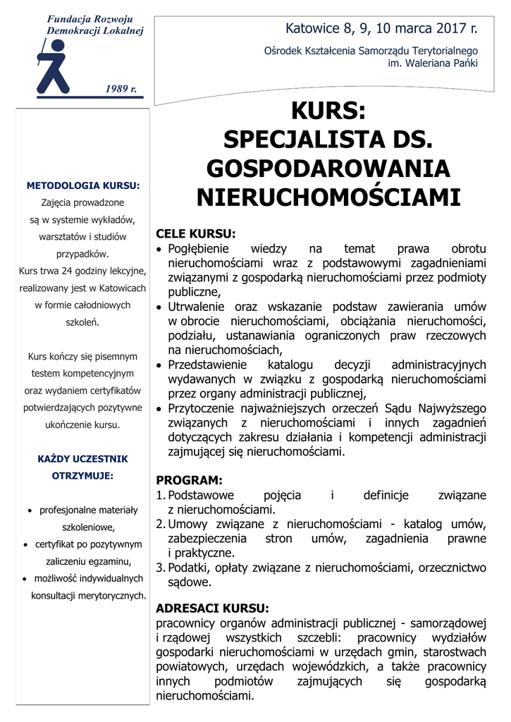 KURS: SPECJALISTA DS. GOSPODAROWANIA