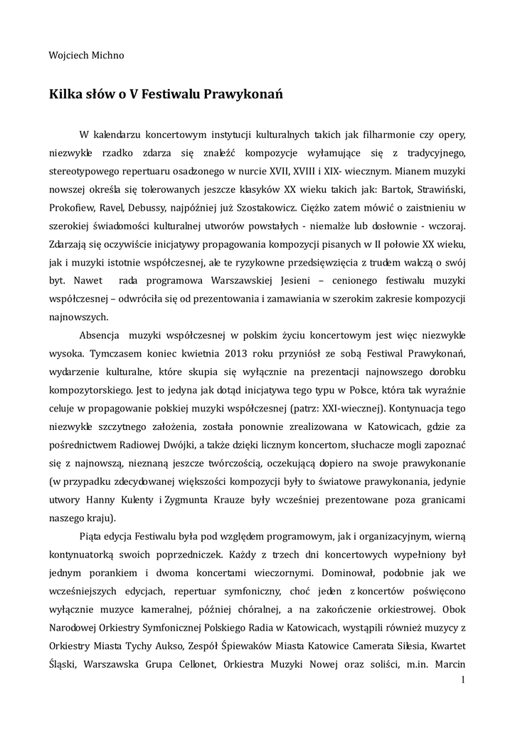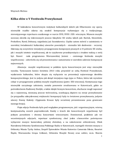 Wojciech Michno - O festiwalu Festiwal Prawykonań