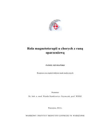 Rola magnetoterapii u chorych z raną oparzeniową PAWEŁ SZYMAŃSKI Rozprawa na stopień doktora nauk medycznych Promotor Dr. hab. n. med. Wanda Stankiewicz- Szymczak, prof. WIHiE Warszawa, 2012 r. WOJSKOWY INSTYTUT MEDYCYNY LOTNICZEJ W WARSZAWIE I. WSTĘP W Polsce rocznie dochodzi do około 12 tysięcy oparzeń wymagających hospitalizacji, z tego około 600 przypadków kończy się śmiercią pacjenta. Ponad 30% chorych jest leczonych w ośrodkach specjalistycznych z uwagi na ciężkość oparzenia. Najczęściej są to pacjenci z izolowanymi oparzeniami, bez współistniejących innych uszkodzeń ciała. Z analiz demograficznych wynika, że do oparzeń dochodzi najczęściej u dzieci, osób starych oraz incydentalnie u osób nieostrożnych i tzw. pechowców. Ciężkość oparzenia oraz wynik leczenia uzależnione są od kilku istotnych parametrów: wieku chorego, rozległości oparzenia i jego głębokości, lokalizacji, chorób współistniejących i obrażeń dodatkowych, oparzeń dróg oddechowych, jakości udzielenia pierwszej pomocy i możliwości ośrodka leczenia oparzeń. 1.1. Wpływ urazu termicznego na rozwój procesów zapalnych (SIRS) i zaburzeń w układzie odpornościowym Pacjent z następstwami urazu termicznego wymaga około 1.5 dnia hospitalizacji na każdy procent oparzonej powierzchni ciała. Inne problemy związane z leczeniem chorego to zabiegi rekonstrukcyjne, rehabilitacja szpitalna i poszpitalna, pomoc psychologiczna oraz adaptacja do życia codziennego w nowej rzeczywistości. W wyniku urazu termicznego czy mechanicznego dochodzi do przerwania ciągłości tkanek i destrukcji komórek. Następstwem tych zjawisk jest uwolnienie własnych antygenów cytoplazmatycznych. W odpowiedzi na uraz organizm reaguje mechanizmem o charakterze obronno-adaptacyjnym. Celem tych reakcji jest odseparowanie i ograniczenie miejsca urazu, przywrócenie objętości krwi krążącej, zapobieżenie infekcji, pobudzenie odbudowy zniszczonych tkanek i usunięcie tkanek martwiczych. W urazach o niewielkim stopniu nasilenia reakcja obronna ustroju jest ograniczona do miejsca uszkodzenia i jej przebieg ma charakter lokalny. Natomiast rozległe urazy mechaniczne, poparzenia od około 20% powierzchni ciała, ciężkie urazy powstające w czasie zabiegu operacyjnego wywołują zazwyczaj odpowiedź organizmu o charakterze uogólnionym, określaną obecnie jako „zespół uogólnionej reakcji zapalnej” (SIRS). Uraz termiczny czy mechaniczny w różnym stopniu stymuluje układ odpornościowy. Odpowiedź tego układu na uraz limitowana jest z jednej strony siłą działania czynnika stymulacyjnego, z drugiej zaś – potencjalnymi możliwościami reagowania układu. Prawidłowa reakcja zakłada eliminację antygenu obcego czy też własnego, podlegającego w warunkach fizjologicznych procesowi sekwestracji anatomicznej czy molekularnej poprzez rekrutację komórek syntetyzujących cały szereg czynników humoralnych uczestniczących w odpowiedzi zapalnej. Kolejny etap prawidłowej reakcji to wyrównanie naruszonych proporcji i powrót do normalnych dla stanu zdrowia wartości ilościowych i czynnościowych dotyczących komórek odpornościowych i ich produktów. W pierwszej fazie dochodzi do aktywacji składowych dopełniacza i układu krzepnięcia, skutkującej uwolnieniem histaminy i bradykininy z następowym zwiększeniem przepuszczalności ścian naczyń i obrzękiem. Obrzęk i uszkodzenie tkanek stanowią ryzyko rozwoju wtórnych powikłań w postaci zakażeń. Aktywacja czynników prozapalych i kolejno przeciwzapalnych prowadzić może do dysfunkcji układu immunologicznego z konsekwencjami w postaci posocznicy, czy tzw. zespołu urazu wielonarządowego (multi organ destruction syndrome, MODS). Odpowiedź uogólniona leży u podstaw rozwoju zespołu hipermetabolicznego w ciągu pierwszych 48 godzin po urazie. W ograniczaniu procesu zapalnego towarzyszącego urazowi biorą udział m.in. prostaglandyny, zwłaszcza PGE2, hormony płciowe, prolaktyna, androgeny, estrogeny, neuropeptydy (jak substancja P), oraz katecholaminy. Efekty niepożądane zespołu hypermetabilocznego to katabolizm mięśni szkieletowych, lipoliza, różnie głębokie defekty immunologiczne i redukcja mineralizacji kości. Skutki zaburzeń metabolicznych utrzymywać się mogą nawet do 12 miesięcy od momentu urazu termicznego. Drugi mechanizm ograniczający skutki reakcji pourazowych to aktywna supresja mediowana czynnikami przeciwzapalnymi. W mechanizmach endo-, para- czy autokrynnych może następować pobudzenie aktywności komórek supresyjnych należących zarówno do wrodzonych, jak i nabytych mechanizmów immunoregulacyjnych. Najlepiej poznano mechanizm działania glikokortykosteroidów, katecholamin, prostaglandyn E, tlenku azotu czy cytokin, jak IL-1ra, IL-4, IL-13, Il-10, TGF czy też receptora IL-8. Czynniki, takie jak IL-1ra oraz rozpuszczalne formy receptorów, działają przede wszystkim jako antagoniści ligandów prozapalnych. Alternatywne czynniki, takie jak IL-4, IL-13, IL-10 czy TGF, działają poprzez indukcję aktywności supresyjnej limfocytów via receptory cytoplazmatyczne (błonowe). Cytokiny pobudzają aktywność supresyjną poprzez stymulację kinaz tyrozynowych, czynniki transdukcji czy aktywatory transkrypcji (STAT), kinazy białkowe czy fosfatazy, proteiny SMAD (wewnątrzkomórkowe białka), supresorów z rodziny białek sygnałowych (SOCS). Część z tych czynników indukuje również mechanizm apoptozy. Potencjalną rolę w indukowaniu mechanizmów prowadzących do rozwoju reakcji zapalnej udowodniono dotychczas dla ponad 50 mediatorów i cytokin. Prace doświadczalne prowadzone na modelach zwierzęcych pozwoliły na poznanie roli poszczególnych cytokin w zapaleniu. Zastosowanie technik biologii molekularnej, technik znakowania p-ciałami monoklonalnymi pozwoliło na określenie roli poszczególnych cytokin w indukowaniu syntezy przeciwciał, rekrutacji komórek zapalnych czy induk