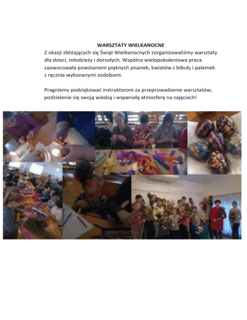 WARSZTATY WIELKANOCNE Z okazji zbliżających się Świąt