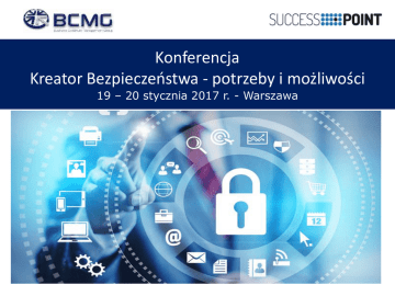 Konferencja Kreator Bezpieczeństwa - potrzeby i możliwości 19 – 20 stycznia 2017 r. - Warszawa Kreator Bezpieczeństwa - potrzeby i możliwości Obecnie zagadnienia związane z obszarem Bezpieczeństwa Informacji stają się przedmiotem zainteresowania co raz większej liczby przedsiębiorstw. Ochrona informacji strategicznych z punktu widzenia funkcjonowania przedsiębiorstwa oraz danych osobowych w szczególności Klientów stają się priorytetem i mogą zapewnić przewagę konkurencyjną. Wychodząc naprzeciw oczekiwaniom rynku BCMG wraz SuccessPoint postanowiła zorganizować Konferencję , która będzie łączyła w sobie forum wymiany doświadczeń poprzez prezentacje ekspertów w dziedzinie Bezpieczeństwa Informacji jak również praktyczne Warsztaty, podczas których Uczestnicy będą mieli okazję wykorzystać posiadaną wiedzę w praktyce pod okiem najlepszych ekspertów. Konferencja została podzielona na trzy bloki tematyczne: • Bezpieczeństwo Informacji • Ochrona Danych Osobowych • Inżynieria socjalna - Socjotechnika 2 Organizatorzy BCMG jest firmą doradczą specjalizującą się w usługach z zakresu zarządzania bezpieczeństwem informacji i ochroną danych osobowych, zarządzania ciągłością działania, zarządzania ryzykiem, bezpieczeństwem fizycznym oraz bezpieczeństwem IT. Posiadamy wieloletnie doświadczenie, profesjonalną wiedzę oraz najwyższe kompetencje zdobyte w ponad 130 projektach audytowych oraz wdrożeniowych. Dla naszych Klientów staramy się być Partnerem. Dla naszych Klientów świadczymy również usługi profesjonalnego Zewnętrznego Administratora Bezpieczeństwa Informacji jak również zapewniamy wsparcie dla merytoryczne dla Zarządów i osób pełniących funkcję ABI. Unikalność naszych usług polega na własnej, opracowanej na drodze wieloletnich doświadczeń metodyce realizacji projektów wdrożeniowych opartych także o dobre praktyki wynikające z wymagań prawnych, sektorowych i międzynarodowych standardów. Nie działamy szablonowo. Dla nas każdy Klient to nowy projekt, nowa organizacja oraz nowe wyzwania. Konsultanci BCMG pracują dla branży finansowej, telekomunikacyjnej, energetycznej, przemysłowej, medycznej, a także dla spółek z sektora publicznego. 3 Organizatorzy SuccessPoint jest firma organizującą konferencje, szkolenia oraz spotkania dedykowane w zakresie zarządzania, nowych technologii i IT. Organizowane wydarzenia każdorazowo są okazją do spotkań w gronie decydentów, kadry zarządzającej, wykwalifikowanej kadry specjalistycznej przedsiębiorstw komercyjnych oraz w gronie decydentów i przedstawicieli administracji publicznej. Nieustannie śledząc trendy, rozwój technologii oraz obserwując mechanizmy rządzące biznesem wykazuje dbałość o poziom realizowanych projektów. Wypełniając swoją misję podejmuje współpracę z przedstawicielami nauki, techniki oraz placówkami administracji publicznej, organizacjami państwowymi i społecznymi. Swoim działaniem przyczynia się do propagowania wiedzy, promocji nowych trendów i technologii. Dzięki elastycznemu podejściu doskonale dostosowuje zakres działań do potrzeb swoich Klientów oraz oczekiwań rynku. 4 Tematyka Bezpieczeństwo Informacji – o Bezpieczeństwie Informacji mówi się już praktycznie w każdej dziedzinie życia, staramy się chronić nasze dane firmowe - stanowiące tajemnicę przedsiębiorstw, ustawodawcy nakładają na firmy obowiązki wynikające z tajemnic służbowych ale także co raz częściej chcemy chronić nasze dane prywatne. Na Konferencji opowiemy o tym czym jest System Bezpieczeństwa Informacji, jak skutecznie wdrożyć go w organizacji, a także o odpowiedzialności za ewentualny wyciek informacji. Ochrona Danych Osobowych – z Danymi Osobowymi stykamy się na każdym kroku, każda firma przetwarza dane osobowe w mniejszym lub większym zakresie i każda zgodnie z przepisami prawa zobowiązana jest do ich ochrony. Podczas Konferencji postaramy się odpowiedzieć jak skutecznie chronić dane, jak przygotować się do pełnienia funkcji Administratora Danych Osobowych oraz w jaki sposób przygotować się na ewentualną kontrolę GIODO. Inżynieria socjalna – Socjotechnika – to stosunkowo nowe zagadnienie, które co raz częściej możemy usłyszeć w mediach i prasie. Czym jest tak naprawdę socjotechnika, kim może być socjotechnik i jak nie paść jego ofiarą ? Na wszystkie te pytania będziemy szukać odpowiedzi w bloku poświęconym Inżynierii socjalnej. 5 Program I dzień 8:00 - 17:00 8:00 - 9:00 Rejestracja gości 9:00 - 9:10 Otwarcie Konferencji, powitanie gości 9:10 - 9:40 Wystąpienie Partnera Głównego Konferencji 9:40 - 10:00 Wystąpienie Partnera Blok I - Bezpieczeństwo Informacji 10:00 - 10:30 - Wprowadzenie do Bezpieczeństwa Informacji, standardy, dobre praktyki a realia biznesowe 10:30 - 11:00 - Odpowiedzialność organizacji za działania podjęte przez użytkowników wewnętrznych i zewnętrznych 11:00 - 11:30 - Korzyści wynikające z wdrożenia i certyfikacji Systemu Bezpieczeństwa Informacji 11:30 - 12:00 - Bezpieczeństwo informacji a systemy teleinformatyczne 12:00 - 12:20 - Przerwa kawowa Blok II - Dane osobowe 12:20 - 12:50 - Wymagania dotyczące przepisów o Ochronie Danych Osobowych w praktyce funkcjonowania przedsiębiorstwa 12:50 - 13:20 - Dobry ABI - od czego zacząć ? 13:20 - 13:50 - Kontrola GIODO - jak się przygotować 13:50 - 14:50 - Obiad 14:50 - 15:20 - Wystąpienie Głównego Partnera Kongresu Blok III - Inżynieria socjalna - socjotechnika 15:20 - 16:20 - Socjotechnika jako sztuka zdobywania informacji 16:20 - 16:50 - Techniki wykrywania, reagowania, obrony i przeciwdziałania atakom socjotechnicznym 16:50 - 17:00 Zakończenie i podziękowania 6 Program II dzień 9:00 - 14:00 Trzy równoległe warsztaty 9:00 - 13:00 Bezpieczeństwo informacji Warsztaty - Klasyfikacja Informacji - prowadzący Dariusz Romańczuk Dane osobowe Warsztaty - Jak przy