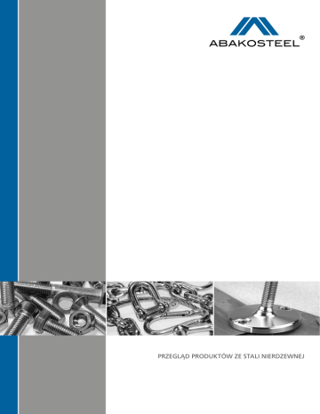 PRZEGLĄD PRODUKTÓW ZE STALI NIERDZEWNEJ Quality first Jesteśmy firmą opartą na wieloletnim doświadczeniu w dostarczaniu rozwiązań dla wielu gałęzi przemysłu między innymi dla przemysłu jachtowego, żeglarskiego, okrętowego, przemysłu maszynowego, spożywczego oraz budownictwa. Nasza wiedza oraz staranny dobór dostawców gwarantują najwyższą jakość oferowanych produktów i atrakcyjne ceny. Realizujemy projekty z wielu gałęzi przemysłu i jesteśmy elastyczni na specyficzne potrzeby rynku, co zapewnia nam ciągły rozwój, oraz jak najlepsze poznanie potrzeb naszych Klientów i Partnerów. W tym celu intensywnie poszerzamy asortyment w naszym magazynie, tak aby produkty najbardziej Państwa interesujące były zawsze dostępne. Na życzenie Klienta tworzymy skład magazynowy pod indywidualne zapotrzebowanie, co wydatnie skraca czas realizacji zamówień i obniża koszty. ABAKOSTEEL S.C. ul. Artylerzystów 4a, 84-300 Lębork tel. +48 59 724 14 16, fax. +48 59 810 86 27 www.abakosteel.pl [email protected] Elementy złączne ze stali nierdzewnej i kwasoodpornej zobacz więcej! Dostarczamy tylko i wyłącznie produkty wysokiej jakości. W przypadku produktów nierdzewnych, na życzenie Klienta dołączamy następujące dokumenty potwierdzające jakość i zgodność dostarczanych wyrobów: • Deklaracja zgodności, • Zaświadczenie o jakości 2.1 wg PN-EN 10204:2005, • Atest 2.2 wg PN-EN 10204:2005, • Świadectwo odbioru 3.1 wg PN-EN 10204:2005, • Protokół odbioru 3.2 wg PN-EN 10204:2005 DIN 931 A2/A4/A4-80 Śruba z łbem sześciokątnym z niepełnym gwintem DIN 7984 A2/A4 Śruba z niskim łbem walcowym i gniazdem imbusowym ISO 7380 A2 A2/A4 Wkręt z łbem stożkowo-płaskim z nacięciem prostym DIN 966 PH A2/A4 Wkręt z łbem stożkowo-soczewkowym z gniazdem krzyżowym DIN 186 A2/A4 Śruba z łbem młoteczkowym z czopem kwadratowym 4 A2/A4/A4-80 DIN 912 A2/A4/A4-80 A2 Wkręt z łbem talerzykowym i gniazdem imbusowym A2/A4 Wkręt z łbem stożkowo-soczewkowym z nacięciem prostym DIN 7985 PH A2/A4 Wkręt z łbem płasko-soczewkowym z gniazdem krzyżowym DIN 188 A2/A4 Śruba z łbem młoteczkowym z noskiem ELEMENTY ZŁĄCZNE ZE STALI NIERDZEWNEJ A2/A4 DIN 7991 DIN 84 A2/A4 A2/A4 A2/A4 1-1163 A4 DIN 85 A2/A4 DIN 965 PZ A2/A4 Wkręt z łbem stożkowo-płaskim i gniazdem krzyżowym A2/A4 Wkręt z łbem płasko-soczewkowym z gniazdem krzyżowym Śruba hakowa DIN 7991 TX Wkręt złbem płaskim z nacięciem prostym Wkręt z łbem stożkowo-płaskim i gniazdem krzyżowym DIN 7985 PZ A2 Śruba z łbem stożkowo-płaskim i gniazdem TORX Wkręt z łbem walcowym z nacięciem prostym DIN 965 PH DIN 6921 Śruba z łbem sześciokątnym i kołnierzem Śruba z łbem stożkowo-płaskim i gniazdem imbusowym 1-1011 DIN 964 DIN 6912 Śruba z niskim łbem walcowym i gniazdem imbusowym Śruba z łbem walcowym i gniazdem imbusowym Wkręt z łbem soczewkowym i gniazdem imbusowym DIN 963 DIN 933 Śruba z łbem sześciokątnym z pełnym gwintem A2 DIN 7985 TX A2/A4 Wkręt z łbem płasko-soczewkowym z gniazdem TORX DIN 603 A2/A4 Śruba z łbem grzybkowym z podsadzeniem (zamkowa) DIN 444 A2/A4 Śruba oczkowa DIN 316 A2/A4 Śruba z łbem motylkowym forma USA DIN 464 A2 DIN 467 A2 A2 A2 DIN 653 DIN 938 A2 DIN 427 Wkręt dociskowym bez łba z końcem płaskim DIN 920 A2 DIN 465 A2 A2 DIN 910 A2/A4 Śruba zamykająca A2/A4 DIN 939 A2/A4 DIN 553 DIN 923 A2 DIN 921 A2 Śruba z łbem płaskim powiększonym DIN 908 A2/A4 DIN 835 A2/A4 Śruba dwustronna część wkręcana 2d A2/A4 Wkręt dociskowy bez łba z końcem stożkowym A2/A4 Śruba zamykająca z pierścieniem i łbem imbusowym Śruba dwustronna część wkręcana 1.25d A2/A4 DIN 315 Nakrętka skrzydełkowa forma USA Wkręt do metalu Śruba z łbem radełkowanym z nacięciem prostym Śruba dwustronna część wkręcana 1d A2/A4 A4 Wkręt z łbem walcowym pomniejszonym z nacięciem Nakrętka radełkowana Śruba zamykająca DIN 417 DIN 404 DIN 466 1-1014 Śruba z dużym łbem grzybkowym z nacięciem prostym Śruba z łbem radełkowanym Nakrętka radełkowana płaska Wkręt dociskowy bez łba z czopem walcowym A2/A4 Śruba z otworem krzyżowym z nacięciem prostym Śruba z łbem radełkowanym DIN 906 DIN 975 Pręt gwintowany do 3 mb DIN 913 A2/A4 Wkręt dociskowy z gniazdem imbusowym i zak. płaskim ELEMENTY ZŁĄCZNE ZE STALI NIERDZEWNEJ 5 DIN 914 A2/A4 Wkręt dociskowy z gniazdem imbusowym i zak. stożkowym DIN 551 A2/A4 Wkręt dociskowy bez łba z końcem płaskim DIN 557 A2/A4 A2/A4 1-1040 6 A2/A4 DIN 562 A2/A4 DIN 979 A2/A4 Nakrętka koronowa niska A2/A4 Nakrętka sześciokątna samokontrująca z wkładką, niska Nakrętka zrywalna DIN 439 Nakrętka czworokątna niska Nakrętka koronowa niska DIN 985 A2/A4 Nakrętka sześciokątna niska Nakrętka czworokątna DIN 937 DIN 915 Wkręt dociskowy z gniazdem imbusowym zak. czopem DIN 986 DIN 917 Nakrętka sześciokątna kołpakowa niska ELEMENTY ZŁĄCZNE ZE STALI NIERDZEWNEJ A2/A4 DIN 928 A2/A4 Nakrętka czworokątna do spawania DIN 929 A2/A4 Nakrętka sześciokątna do zgrzewania/spawania DIN 982 A2/A4 A2/A4 DIN 934 A2/A4 A2/A4 Nakrętka sześciokątna DIN 1587 DIN 438 A2/A4 Wkręt dociskowy bez łba z końcem wgłębionym DIN 546 A2/A4 Nakrętka okrągła z nacięciem DIN 935 A2/A4 Nakrętka koronowa Nakrętka samokontrująca z wkładką, wysoka Nakrętka sześciokątna kołpakowa samokontrująca z wkładką A2 DIN 916 Wkręt dociskowy z gniazdem imbusowym zak. wgłębieniem DIN 6953 A2/A4 Nakrętka sześciokątna z konierzem stożkowym radełkowanym 1-1017 A2 Nakrętka do wspawywania A2/A4 Nakrętka sześciokątna kołpakowa DIN 6330 Nakrętka sześciokątna wysokość 1,5d A2/A4 DIN 6334 A2/A4 Nakrętka sześciokątna wysokość 3d DIN 80704 A4 Nakrętka koszowa DIN 127 B A2/A4 A2/A4 A2/A4 Podkładka okrągła do konstrukcji drewnianych DIN 1441 Podkładka do sworzni 1-1019 DIN 93 A2/A4 DIN 434 A2 A2/A4 DIN 128 A A2 DIN 137 A A2/A4 A2/A4 A2/A4 A2 DIN 6797 I A2/A4 DIN 432 A2/A4 DIN 440 V A