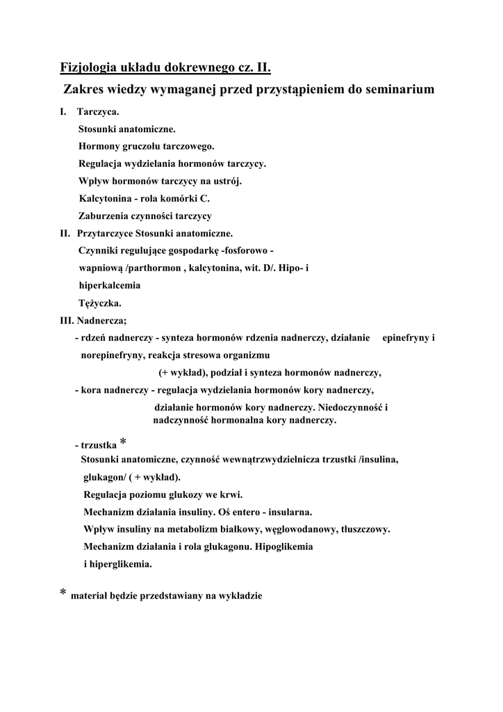 Fizjologia układu dokrewnego cz. II. Zakres wiedzy wymaganej
