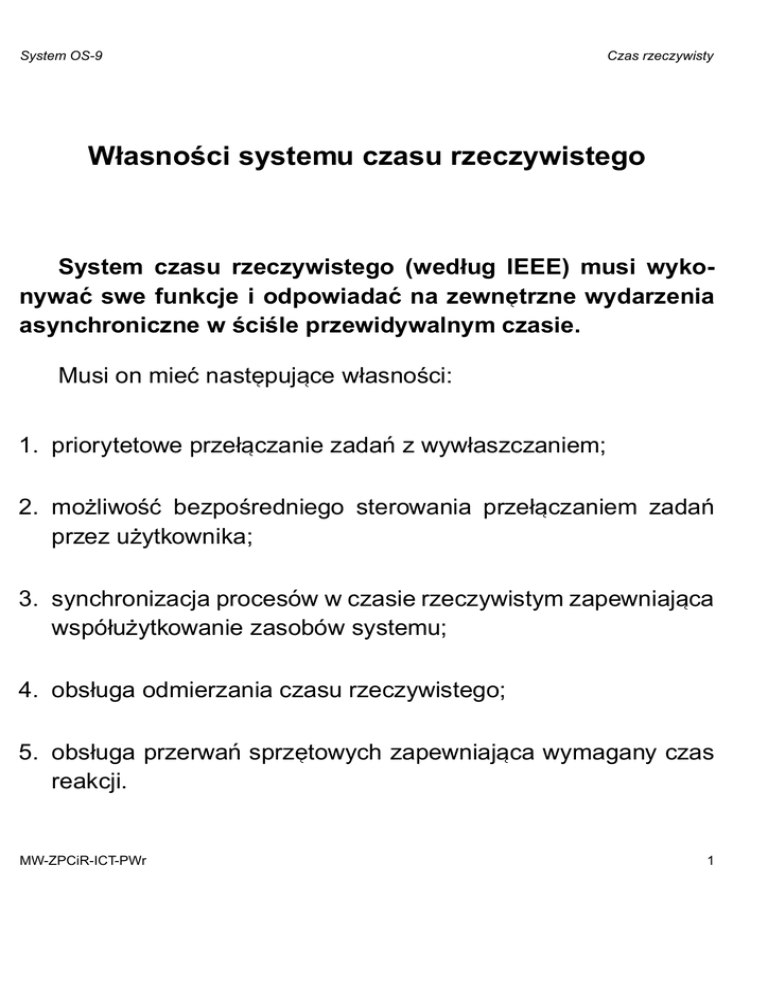Własności systemu czasu rzeczywistego