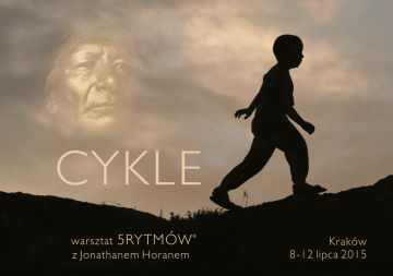 CYKLE warsztat 5RYTMÓW z Jonathanem Horanem Kraków 8-12 lipca 2015 CYKLE Od gór i oceanu Big Sur w Kalifornii po wie owce i teatry Nowego Jorku dorasta em w skrajno ciach i nauczy em si g bokiego szacunku do dziko ci w nas i w naturze. Gdy mia em dziewi lat, wzi em udzia w moim pierwszym warsztacie 5Rytmów - mój dziadek umiera , moja mama czu a si bardzo kiepsko i martwi em si o ni , wi c trzyma em si jej blisko. I tak zakocha em si tej w pracy, w rytmach, w wolno ci i w dyscyplinie. Gdy mia em 17 lat, wpad em w 5Rytmów po uszy i od tamtej pory wzi em udzia niemal w ka dym warsztacie, który Gabrielle prowadzi a w przeci gu ostatnich 25 lat. Pod am za jej ta cz cymi krokami jako student i nauczyciel i jestem oddany temu, aby ogie istoty jej nauk zawsze p on . Jonathan Horan Sposób uczenia przez Joantahana to zdumiewaj ca mieszanka szczero ci, humoru, pokory, wra liwo ci i nieustraszono ci. Nape nia on prac g bi , która cz sto zapiera mój oddech. agodny wojownik i zraniony uzdrowiciel, ma jedno z najwi kszych serc jakie kiedykolwiek spotka am. Wychowa si w onie tej pracy bior c w siebie jej esencj , a teraz wydycha j bez wysi ku w swoim yciu, w pracy, w swoim ta cu. Jest moim najbardziej oddanym uczniem i równocze nie najwi kszym nauczycielem. Gabrielle Roth W trakcie tego warsztatu b dziemy u ywa praktyki ruchu 5Rytmów jako narz dzia w r ku archeologa, aby poszuka ukrytego skarbu, pere m dro ci zbieraj cych si na nasze do wiadczenie yciowe. 5Rytmów oferuje nam zarówno map jak i sposób, dzi ki któremu mo emy zrozumie i wiadomie uciele ni wzory, fale i wibracje, które organicznie nios nas od Narodzin do mierci. Ta podró poprzez rytmy i rytua y, b dzie g bokim badaniem naszych osobistych relacji, ludzi, miejsc, wszystkich i wszystkiego, co si wydarza o i okre li o kim jeste my. Ka da sesja b dzie okazj do g bokiego zanurzenia w te cz ci nas, które chcemy celebrowa i uhonorowa , ale te i te, od których chcemy si uwolni . Praktyka ruchu w ró norodnej grupie ludzi niezwykle wzbogaca. Praca w Cyklach skupia nas na wspólnym dla wszystkich poziomie, dostarcza twórczego i innowacyjnego pryzmatu, poprzez który odbywamy t podró . Przynie notatnik, kilka rodzinnych zdj oraz przedmiot, który ma dla Ciebie wyj tkowe znaczenie. czas koszt 8-12 lipca 2015, K r a k ó w, d o k a d n e m i e j s c e b d z i e o g o s z o n e 990 z - ni sza cena przy wp acie zaliczki lub pe nej kwoty do 16.03.2015 1125 z - cena po 16.03.2015, zaliczka - 300 z Ten warsztat jest dla zaawansowanych. Wymagane wcze niejsze do wiadczenia 5Rytmów na poziomie Waves i Heartbeat. Cykle s warsztatem wymaganym dla osób aplikuj cych do kursu nauczycielskiego 5Rytmów. wi cej www.5rytmow.com oraz www.5rhythms.com przeczytaj Gabrielle Roth Maps to Ecstasy i Sweat Your Prayers polskie wydanie: Uwolnij cia o, uciele nij dusz (Wyd. Free Bird) zapisy Gabriela Kramarczyk +48602135999 [email protected] www.5rytmow.com