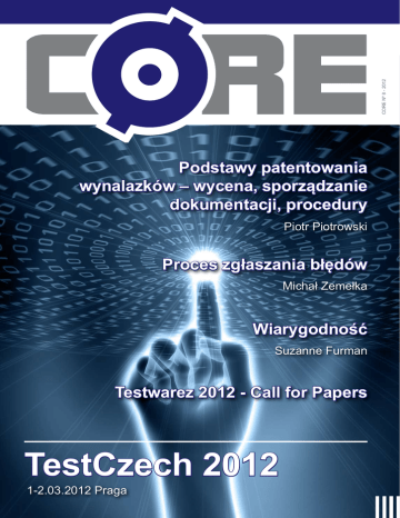 CORE Nº 8 - 2012 Podstawy patentowania wynalazków – wycena, sporządzanie dokumentacji, procedury Piotr Piotrowski Proces zgłaszania błędów Michał Zemełka Wiarygodność Suzanne Furman Testwarez 2012 - Call for Papers TestCzech 2012 1-2.03.2012 Praga Wprowadzenie Testowanie oprogramowania 04 Redakcja 23 Proces zgłaszania błędów ................................................................ 04 Od redakcji Michał Zemełka ................................................................ 28 Konferencja CzechTest 2012 ................................................................ Inżynieria oprogramowania 05 Podstawy patentowania wynalazków – wycena, sporządzanie dokumentacji, procedury Piotr Piotrowski ................................................................ INDEX 11 Wprowadzenie do statystycznej kontroli procesów testowych Piotr Piotrowski ................................................................ 14 Wiarygodność Suzanne Furman ................................................................ 18 Sprawne wprowadzanie procesów Agile do istniejącej organizacji Mike Cohn 29 Konferencja Testwarez 2012 Wprowadzenie Redakcja Kwartalnik c0re (4 numery w roku) jest wydawany przez gasq Service GmbH. Redaktor naczelny: Karolina Zmitrowicz [email protected] Redakcja w składzie: Bartłomiej Prędki bartł[email protected] Krzysztof Chytła [email protected] Współpraca: Dariusz Paczewski [email protected] Michał Figarski Robert Kuźmiak Piotr Piotrowski 04 Adres korespondencyjny: C0RE Magazine c/o gasq Service GmbH Kronacher Straße 41 96052 Bamberg Germany Dział reklamy: [email protected] WWW: www.coremag.eu Wszystkie znaki firmowe zawarte w piśmie są własnością odpowiednich firm. Prawa autorskie: Wszystkie opublikowane artykuły są objęte prawem autorskim autora lub przedsiębiorstwa. Wykorzystywanie w innych publikacjach, kopiowanie lub modyfikowanie zawartości artykułu bez pisemnego upoważnienia autora jest zabronione. Osoby zainteresowane współpracą w zakresie publikacji prosimy o kontakt: [email protected] Od redakcji Nowy Rok to także nowy numer magazynu C0RE. Mamy nadzieję, iż poprzedni rok był udany, a Nowy przyniesie jeszcze więcej sukcesów. Pomimo zapowiadanych katastrof (koniec świata, EURO 2012) zespół C0RE obiecuje dołożyć wszelkich starań, aby dostarczać wartościowych i ciekawych artykułów, zarówno do polskiej jak i angielskiej edycji magazynu. Już teraz zapraszamy na marcową konferencję Czechtest, która odbędzie się w Pradze – szczegóły w numerze. Zapraszamy również do składania prozycji wystąpień na konferencję Testwarez - która odbędzie się tym razem w Poznaniu. Dołączając się do Noworocznych Życzeń, chcielibyśmy przedstawić ósmy numer C0RE, w którym polecamy między innymi: • Proces zgłaszania błędów Michał Zemełka opisuje procedurę i najlepsze zasady zgłaszania błędów. Autor przedstawia procedurę stworzoną przez Rexa Blacka dodając do niej rzeczywisty scenariusz. Artyku obowiązkowy dla wszystkich zajmujących się testowaniem oprogramowania. • Podstawy patentowania wynalazków – wycena, sporządzanie dokumentacji, procedury – Piotr Piotrowski wyjaśni, czym jest patent i w jaki sposób starać się o jego uzyskanie. Autor na podstawie własnych doświadczeń opisuje, jak wyceniać patenty i jak sporządzać dokumentację zgłoszeniową. Dziękujemy naszym partnerom, współpracownikom oraz autorom, dzięki którym magazyn może się rozwijać oraz dostarczać coraz więcej ciekawych publikacji zagranicznych oraz – przede wszystkim – polskich. Dziękujemy za pomoc! Życzymy miłej lektury! Inżynieria oprogramowania Podstawy patentowania wynalazków – wycena, sporządzanie dokumentacji, procedury basic intermediate advanced O Autorze: Pracownik wiedzy, Inżynier, Badacz, Działacz. Inżynier Testów w Tieto Polska, gdzie zajmuje się czynnościami testowymi w przemyśle motoryzacyjnym oraz okazjonalnie usprawnianiem procesów testowych korporacji Tieto. Działacz w organizacjach non-profit od regionalnych do globalnych w zakresie edukacji oraz nauki i technologii. Posiada kilkuletnie doświadczenie w branżach: telekomunikacja, badania i rozwój, informatyka oraz liczne certyfikaty z: zarządzania i języka angielskiego. Ukończył edukację w obszarze zarządzania na nieformalnym opanowaniu treści programowych Doctor of Business Administration, natomiast w obszarze techniki na trzecim roku doktoratu z telekomunikacji na Politechnice Warszawskiej. Autor ponad 20-tu publikacji oraz dwóch zgłoszeń patentowych. Autor: Piotr Piotrowski Streszczenie Artykuł przedstawia wybrane elementy patentowania wynalazków, do których można zaliczyć: wycenę patentów, sporządzanie dokumentacji zgłoszeniowej oraz procedury ochrony wynalazków. Wprowadzenie – czym jest wynalazek i patent na wynalazek? Wyjaśnienie, czym jest wynalazek można znależć w pierwszym rozdziale [PWP11]: „Patenty są udzielane – bez względu na dziedzinę techniki – na wynalazki, które są nowe, posiadają poziom wynalazczy i nadają się do przemysłowego stosowania. (...) (...) Wynalazek uważa się za nowy, jeśli nie jest on częścią stanu techniki. (...) (...) Przez stan techniki rozumie się wszystko to, co przed datą, według której oznacza się pierwszeństwo do uzyskania patentu, zostało udostępnione do wiadomości powszechnej w formie pisemnego lub ustnego opisu, przez stosowanie, wystawienie lub ujawnienie w inny sposób. (...) (...) Wynalazek uważa się za posiadający poziom wynalazczy, jeżeli wynalazek ten nie wynika dla znawcy, w sposób oczywisty, ze stanu techniki. (...) (...) Wynalazek uważany jest za nadający się do przemysłowego stosowania, jeżeli według wynalazku może być uzyskiwany wytwór lub wykorzystywany sposób, w rozumieniu technicznym, w jakiejkolwiek działalności przemysłowej, nie wykluczając rolnictwa. (…) (…) Za wynalaz
