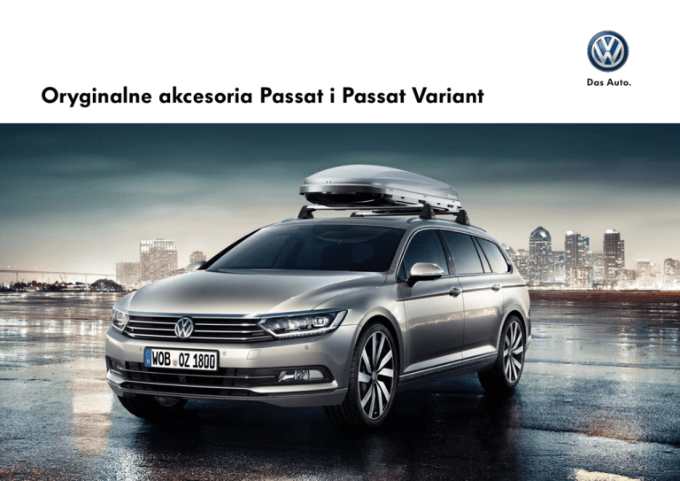 Oryginalne akcesoria Passat i Passat Variant ORYGINALNE AKCESORIA. VOLKSWAGENA. Każdy produkt z oferty Oryginalnych akcesoriów Volkswagen® jest udoskonalany równocześnie z samochodem i jest wykonywany z wysokiej jakości materiałów przy użyciu najnowszej technologii. Dopiero po przejściu surowych kontroli bezpieczeństwa, wykraczających poza standardy wynikające z przepisów prawa, idealnie dopasowany produkt znajduje się w ofercie Oryginalnych akcesoriów Volkswagen®. Abyś był bezpieczny i zadowolony, a Twój Volkswagen był prawdziwym Volkswagenem. Piktogramy – właściwości produktów. Produkty z oferty Oryginalnych akcesoriów Volkswagen® mają wiele doskonałych właściwości. Piktogramy zwracają uwagę na najbardziej interesujące cechy. Montaż bez użycia narzędzi Innowacja produktowa Obciążenie Przyjazne dla środowiska Możliwość wyboru koloru Test Volkswagen City Crash Możliwość stosowania dla wielu modeli Dodatkowe wykończenie felg Ograniczające zużycie paliwa Podlegające recyklingowi max. 50 kg Niektóre z przedstawionych w tym katalogu samochodów są wyposażone w elementy wyposażenia dodatkowego i/lub akcesoria. Nie należą one – podobnie jak ewentualne elementy dekoracyjne – do standardowego wyposażenia samochodu. 04 08 14 20 30 44 50 Sport i design Felgi i kompletne koła Komunikacja Transport Komfort i ochrona Lifestyle Informacje 02 03 Detale wpływają na estetyczny wygląd. Myśl zmienia się w pomysł, który staje się celem. Twoim celem jest ponadprzeciętny wygląd Twojego samochodu? Dobrze, że Oryginalne akcesoria Volkswagen® oferują indywidualnie dopasowany poziom dynamiki i stylistyki, który wyróżni Twojego Passata na tle innych. Wskazówka Na ilustracji z prawej: Listwa ochronna na pokrywę bagażnika strona 7, Felga aluminiowa Marseille strona 12 Sport i design 04 05 01 01 Oryginalne akcesoria Volkswagen® Listwa ochronna krawędzi bagażnika w kolorze stali nierdzewnej Osłona krawędzi bagażnika w kolorze stali nierdzewnej nie tylko chroni lakier przy wkładaniu i wyjmowaniu bagaży, lecz również stanowi interesujący akcent optyczny. Można ją łatwo i szybko nakleić na krawędź zderzaka. Tylko dla Passata Varianta. Art. nr: 3G9 061 195 02 02 Oryginalne akcesoria Volkswagen® Listwy progowe z aluminium Listwy progowe z wysokiej jakości aluminium z napisem „Passat” chronią narażone na zadrapania miejsca i stanowią interesujący akcent stylistyczny. 1 zestaw = 2 sztuki przednie. Art. nr: 3G0 071 303 03 03 Oryginalne akcesoria Volkswagen® Listwa ochronna na pokrywę bagażnika Atrakcyjna tylna listwa nie tylko zdobi, ale także chroni krawędź klapy bagażnika przed uszkodzeniem. Naklejana na dolny brzeg pokrywy bagażnika stanowi eleganckie wykończenie. Do wersji Passat Variant. Art. nr: 3G9 071 360 04 04 Oryginalne akcesoria Volkswagen® Komplet nakładek na pedały Sportowe, łatwe do nałożenia nakładki na pedały ze szczotkowanej stali nierdzewnej zachwycają swoim stylem; specjalna powłoka ogranicza poślizg. Art. nr: 5G1 064 200 dla wersji z manualną skrzynią biegów Art. nr: 5G1 064 205 dla wersji ze skrzynią DSG (bez ilustracji) Sport i design 06 07 Praca zespołowa kluczem do sukcesu. Optymalne rozłożenie sił, konsekwentna współpraca, szerokie spektrum mocy i harmonijna całość to przepis na sukces i przyjemność z jazdy. Felgi aluminiowe oraz kompletne koła z oferty Oryginalnych akcesoriów Volkswagen® już od dawna wprowadzają w życie zasady obowiązujące w efektywnej pracy zespołowej. Wskazówka Na ilustracji z lewej: Listwa ochronna na pokrywę bagażnika (Passat Variant) strona 7, Felga aluminiowa Marseille strona 12 Felgi i kompletne koła 08 09 Kompletne koła, na których możesz polegać. Wiemy o co chodzi. Know-how skryty pod estetyczną fasadą. Nasze kompletne koła oferują wszystko, czego oczekuje się od Oryginalnych akcesoriów Volkswagen®: najwyższą jakość, maksymalną pewność i nowoczesny design. To właśnie na kołach spoczywa największa odpowiedzialność za bezpieczeństwo. Oryginalne felgi podkreślają sportowy charakter Passata i Passata Varianta, zarówno pod względem bezpieczeństwa, jak i wyglądu całego samochodu. Wraz z naszą ofertą kompletnych kół proponujemy Ci asortyment, na którym możesz polegać w stu procentach. W każdym calu. Kompletne koła z oferty Oryginalnych akcesoriów Volkswagen® są perfekcyjnie dopasowane do każdego modelu tej marki. Dzięki długoletniemu doświadczeniu nasi projektanci tworzą optymalne połączenia kół i opon dla samochodu i dbają o to, aby odpowiadały one wysokim wymogom marki Volkswagen dotyczącym jakości i bezpieczeństwa. Priorytetem jest, aby technologia montażu była dopasowana do masy pojazdu, wersji silnika i rozmiaru hamulców. Wyczynowiec w sportach ekstremalnych. Wybrane opony Premium. W całym okresie eksploatacji opona pokonuje średnio trasę równą podróży wokół kuli ziemskiej i jest przy tym elementem łączącym samochód z drogą. Musi być niezawodna, a jednocześnie nadawać się do najróżniejszych nawierzchni – dlatego pierwszorzędna jakość opony to dla nas absolutna konieczność. Dzięki naszej współpracy z wiodącymi producentami opon klasy Premium, oferowane przez nas kompletne koła gwarantują najlepszą przyczepność – metr za metrem. Perfekcyjne dopasowanie. Montaż kompletnych kół. W pełni automatyczny montaż na nowoczesnych liniach produkcyjnych – w ten sposób felga i opona są łączone w jedną doskonałą całość. Precyzyjna produkcja w kontrolowanej temperaturze gwarantuje niezmiennie wysoką jakość naszych kompletnych kół – i posiada liczne zalety: • • kontrola bicia i perfekcyjnego ruchu w płaszczyźnie dla każdego koła, profesjonalne przechowywanie kompletnych kół aż do momentu wydania. Zostają tylko najlepsi. Oryginalne felgi aluminiowe Volkswagen. • • • • Testy wytrzymałościowe sprawd