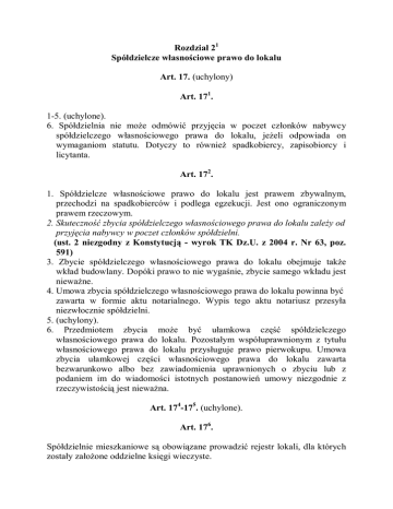 Rozdział 2 Spółdzielcze własnościowe prawo do lokalu Art. 17