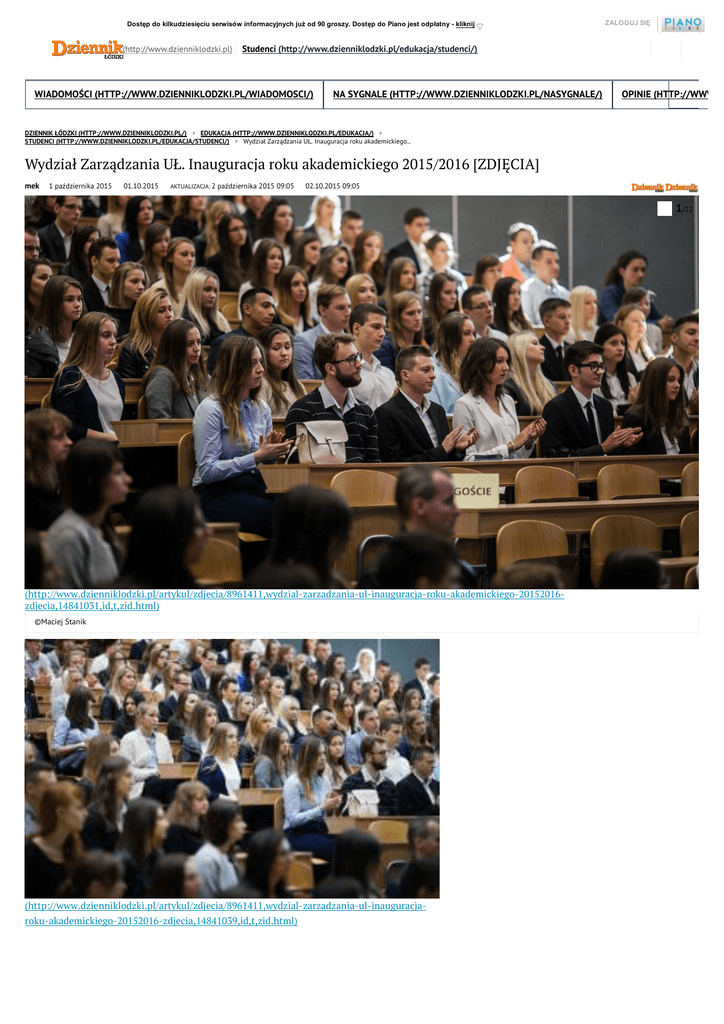 Wydział Zarządzania UŁ. Inauguracja roku akademickiego 2015/2016