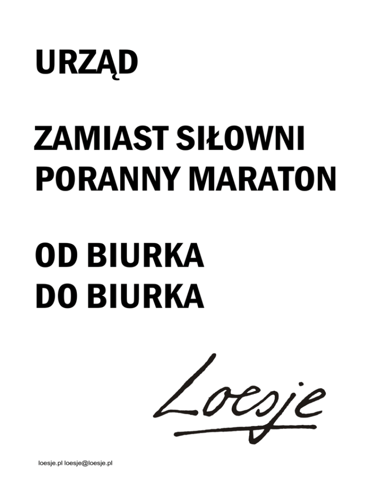 URZĄD ZAMIAST SIŁOWNI PORANNY MARATON OD BIURKA DO BIURKA loesje.pl [email protected]