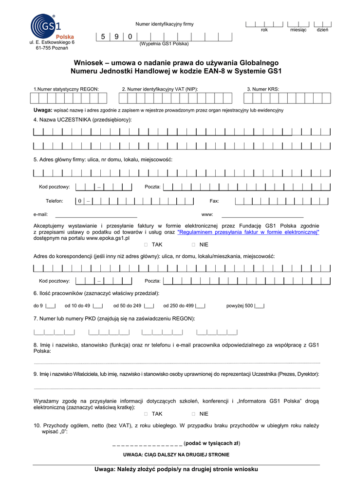 Wniosek umowa GTIN-8