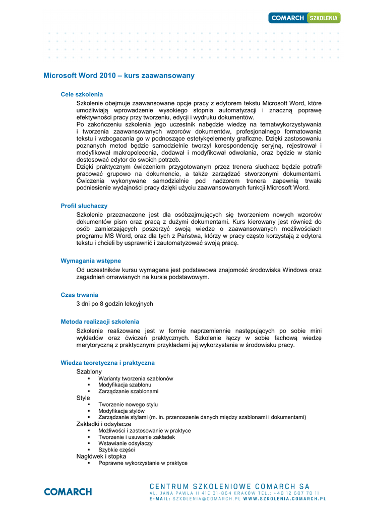 Microsoft Word 2010 – kurs zaawansowany