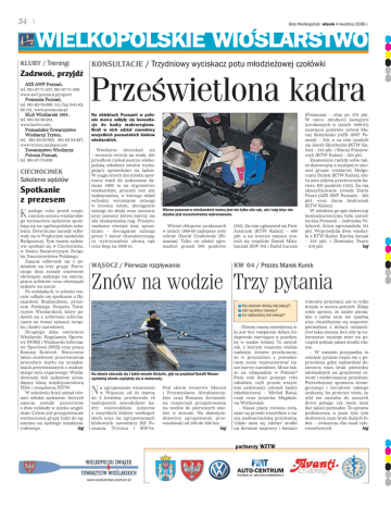 34 Głos Wielkopolski wtorek 4 kwietnia 2006 r. WIELKOPOLSKIE WIOSLARSTWO AZS AWF Poznań, tel. 061-87-71-557, 061-87-71-390, www.awf.poznan.pl/sport Posnania Poznań, tel. 061-82-78-000, tel./fax 0-61-8206-101, www.posnania.pl Klub Wioślarski 1904 , tel. 061-83-30-293, www.kw04.com Poznańskie Towarzystwo Wioślarzy Tryton, tel. 061-83-33-665, 061-83-34-287, www.tryton.najlepsi.net Towarzystwo Wioślarzy Polonia Poznań, tel. 061-87-73-630 CIECHOCINEK Szkolenie sędziów Spotkanie z prezesem K ażdego roku przed rozpoczęciem sezonu wioślarskiego wyznaczeni sędziowie spotykają się na ogólnopolskim szkoleniu. Dotychczas narady odbywały się w Prądocinie niedaleko Bydgoszczy. Tym razem sędziowie spotkali się w Ciechocinku, w Domu Sanatoryjnym Związku Nauczycielstwa Polskiego. Zajęcia odbywały się z podziałem na trzy grupy. Pierwszego dnia zostały omówione obowiązki sędziego na starcie, praca arbitrów oraz obowiązki sędziów na mecie. Po wykładach, w sobotni wieczór odbyło się spotkanie z Ryszardem Stadniukiem, prezesem Polskiego Związku Towarzystw Wioślarskich, który podzielił się z arbitrami informacjami na temat sytuacji związku i kadry narodowej. Drugiego dnia omówiono Wioślarski Regulamin Sportowy (WRS) i Wioślarski Informator Sportowy (WIS) oraz pracę Komisji Kontroli. Stworzono także możliwość przećwiczenia procedury startu na urządzeniach przywiezionych z maltańskiego toru regatowego. Wykładowcami byli sędziowie posiadający klasę międzynarodową FISA i związkową PZTW. W szkoleniu brali udział również młodzi sędziowie, których zajęcia zostały poszerzone o dwa wykłady w języku angielskim. Celem jest przygotowanie wyznaczonej grupy ludzi do egzaminu na sędziego międzynaleg rodowego. Prześwietlona kadra Na obiektach Posnanii w połowie marca odbyły się konsultacje do kadry makroregionu. Brali w nich udział zawodnicy wszystkich poznańskich klubów wioślarskich. Wioślarze doczekali się – wreszcie wrócili na wodę. Ale przedtem czekał jeszcze wielkopolską młodzież ostatni wymagający sprawdzian na lądzie. W ciągu trzech dni młodzi sportowcy mieli do pokonania dystans 4000 m na ergometrze wioślarskim; przeszli test siły maksymalnej, w którego skład wchodzi: wyciskanie sztangi w leżeniu tyłem, dociąganie sztangi do deski oraz suwnica, przy pomocy której mierzy się siłę maksymalną nóg. Przeprowadzono również inny sprawdzian – dociąganie sztangi przez 7 minut charakteryzujący wytrzymałość siłową rąk oraz bieg na 3000 m. ARCHIWUM Zadzwoń, przyjdź KONSULTACJE / Trzydniowy wyciskacz potu młodzieżowej czołówki Wbrew pozorom w wioślarstwie ważna jest nie tylko siła rąk, ale i nóg więc niezbędne jest wszechstronne wytrenowanie. Wśród chłopców urodzonych w latach 1988-89 najlepsze noty zebrał Dawid Grabowski (Posnania). Tylko on zdołał zgromadzić ponad 500 punktów WĄSOCZ / Pierwsze rozpływanie (516). Za nim uplasował się Piotr Juszczak (KTW Kalisz) – 486 pkt. a na trzecim miejscu znaleźli się wspólnie Dawid Mikołajczak (KW 04) i Rafał Łuczak (Posnania) – obaj po 475 pkt. W nieco młodszej kategorii (urodzonych w latach 1990-91) najwięcej punktów zebrał Maciej Kobyliński (AZS AWF Poznań) – 310, a za nim znaleźli się Jakub Skrabulski (KTW Kalisz) – 242 pkt. i Maciej Pokojowczyk (KTW Kalisz) – 224 pkt. Znakomicie radziły sobie także dziewczęta, a najlepiej w starszej grupie wioślarek Małgorzata Dudek (KTW Kalisz), która jako jedyna przekroczyła barierę 400 punktów (423). Za nią sklasyfikowane zostały Daria Filary (AZS AWF Poznań) – 383 pkt. oraz Anna Andrzejak (KTW Kalisz). W młodszej grupie dziewcząt bezkonkurencyjna była zawodniczka Posnanii – Jadranka Velićković, która zgromadziła 314 pkt. Wyprzedziła dwie wioślarki z KTW Kalisz: Karinę Janiak – 254 pkt. i Dominikę Tworo leg – 219 pkt. KW 04 / Prezes Marek Kurek Znów na wodzie Trzy pytania Kto stanowi dzisiaj siłę sekcji? n Jaki są plany rozwoju? n Co najbardziej boli sekcję? n ARCHIWUM KLUBY / Treningi Na obozie zdarzały się i takie wesołe historie, gdy na przykład Natalii Monarszyńskiej wiosła zaplątały się w wodorosty. N a zgrupowaniu wiosennym w Wąsoczu od 24 marca do 2 kwietnia przebywało 16 najlepszych zawodników kadry wojewódzkiej juniorów z wszystkich klubów wielkopolskich oraz na zgrupowaniach klubowych zawodnicy KS Posnania, Trytona i KW-04. Pod okiem trenerów Marioli i Przemysława Abrahamczyków oraz Romana Jermiszkina rozpoczęli przygotowania na wodzie do pierwszych startów w sezonie. Na dziesięciodniowym zgrupowaniu przewiosłowali od 250 do 300 km. leg –Dzisiaj naszą największą siłą jest bez wątpienia Adam Łodygowski startujący w pojedynkę w wadze lekkiej. To zawodnik, z którym wiążemy wielkie nadzieje. Jestem przekonany, że w przyszłości z powodzeniem może reprezentować nasze barwy narodowe. Może także na olimpiadzie w Pekinie? Poza nim duże postępy robi młodzież, czyli przede wszystkim uzdolniony członek kadry młodzieżowej – Michał Ratajczak oraz juniorka Magdalena Wojtkowiak. – Nasze plany rozwoju związane są przede wszystkim z naszą nadwarciańską przystanią. Udało nam się zdobyć środki na doraźne naprawy i bieżące partnerzy WZTW www.wioslarstwo.poznan.pl remonty przystani, ale to tylko kropla w morzu potrzeb. Zdaję sobie sprawę, że żadne pieniądze z nieba nam nie spadną więc chcielibyśmy się wspomóc pieniędzmi z dotacji unijnych. Jest taka szansa, lecz aby ją wykorzystać musimy mieć na początek jednak jakieś środki własne. – W naszym przypadku to ostatnie pytanie wiąże się z poprzednim, gdyż najbardziej doskwiera nam brak pieniędzy niezbędnych na gruntowny remont i modernizację przystani. Potrzebujemy sponsora strategicznego i cierpliwie takiego szukamy, bo przecież wiem, że nikt nie zastuka do naszych drzwi pytając czy może nam dać jakieś pieniąd