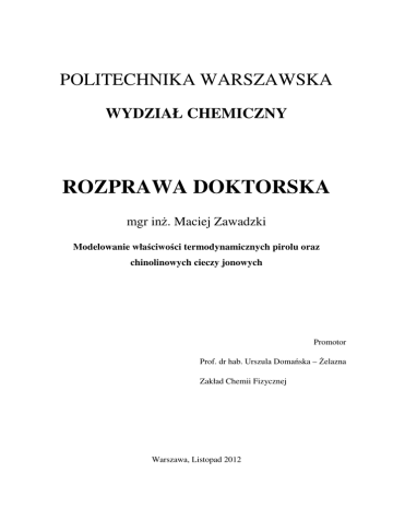 chinolinowych cieczy jonowych, Politechnika Warszawska, Wydział Chemiczny, 2011.