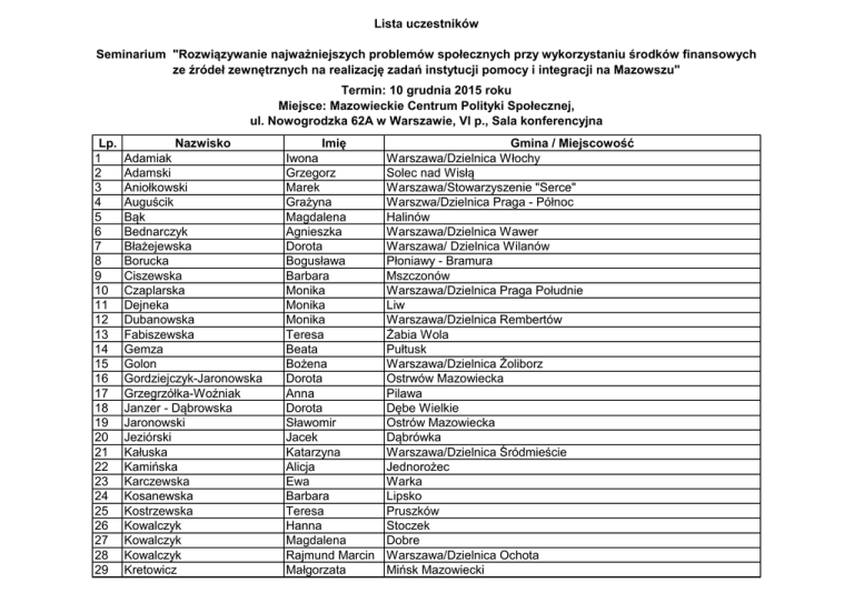 Lista uczestników - Mazowieckie Centrum Polityki Społecznej