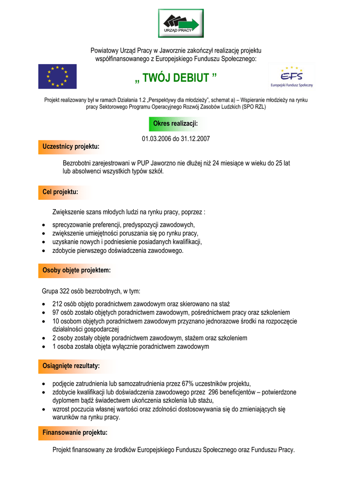 twój debiut - Powiatowy Urząd Pracy w Jaworznie
