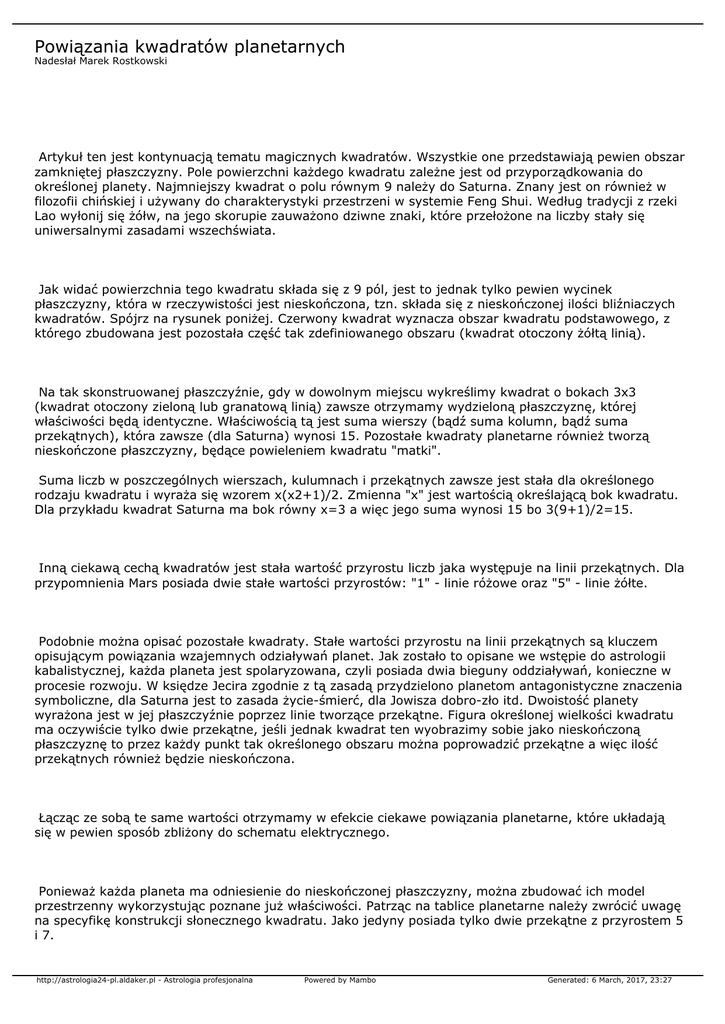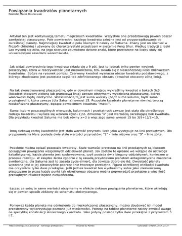 określonej planety. Najmniejszy kwadrat o polu równym 9 należy do Saturna. Znany jest on również w