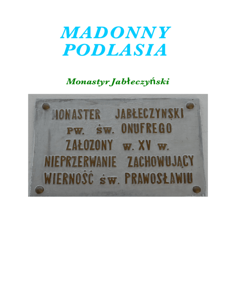 MADONNY PODLASIA Monastyr Jab łeczyński Wejście do Monasteru świętego Onufrego Główna świątynia Klasztoru Nawa główna z ikonostasem Królewskie Wrota Monastyru Jab łeczyńskiego Matka Boska Jab łeczyńska Cudowna ikona świętego Onufrego Kaplica Świętego Apostoła i Ewangelisty Jana Teologa Kodeń Fronton Bazyliki Mniejszej w Kodniu Fasada kościoła pw. Świętego Ducha w Kodniu Wnętrze Kościoła Kodeńskiego Obraz Matki Boskiej Kodeńskiej Opracował: Zbigniew Karczewski