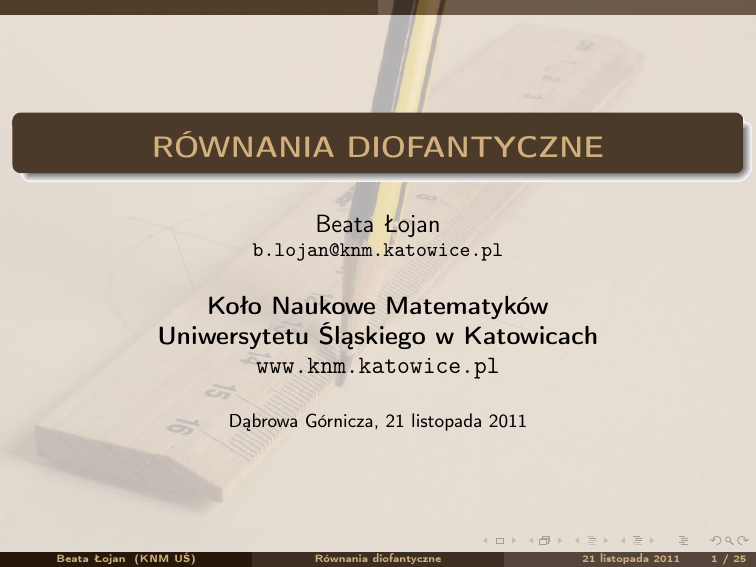 równania diofantyczne - Koło Naukowe Matematyków UŚ