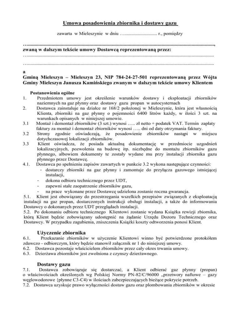 Gminą Mieleszyn – Mieleszyn 23, NIP 784-24-27-501 reprezentowaną przez Wójta