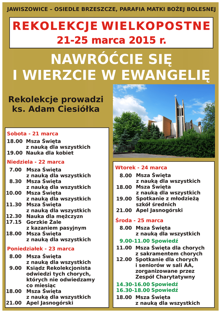 plakat - Parafia pw Matki Bożej Bolesnej w Jawiszowicach
