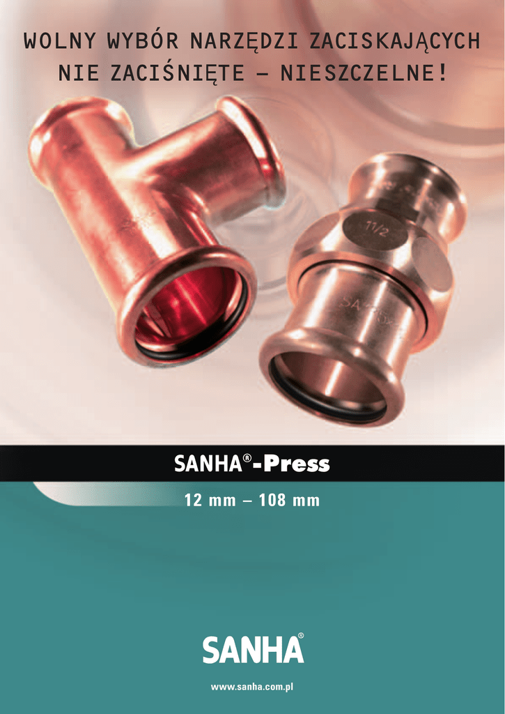 WOLNY WYBÓR NARZ¢DZI ZACISKAJÑCYCH NIE ZACIŚNI¢TE – NIESZCZELNE! SANHA®-Press 12 mm – 108 mm www.sanha.com.pl SANHA®-Press PE¸NA KOMPATYBILNOŚĆ NARZ¢DZI ZACISKAJÑCYCH Z GWARANCJÑ Pe∏na kompatybilnoÊç! Z∏àczki systemu zaciskowego SANHA®-Press mo˝na zaciskaç wszystkimi dost´pnymi szcz´kami oraz maszynami zaciskajàcymi przeznaczonymi do zaciskowych systemów metalowych typu M-MM (∏àcznie z 54 mm). Nie zaciÊni´te nieszczelne! System zaciskowy SANHA®-Press jest tak skonstruowany, ˝e podczas próby ciÊnieniowej z∏àczki nie zaciÊni´te na pewno wyka˝à nieszczelnoÊç. To gwarantujemy! Szczególnie ∏agodny profil zaciÊni´cia! • 8 – kàtny do 35 mm • 9 – kàtny do 54 mm • Profil trochoidalny do 108 mm Przez sto˝kowe odkszta∏cenie rury system zaciskowy SANHA®-Press zabezpieczony jest równie˝ przed nadzwyczaj du˝ymi udarami ciÊnienia. Obszerny zakres gwarancji! SANHA® ponosi w pe∏ni odpowiedzialnoÊç za szczelnoÊç po∏àczenia! JakoÊç potwierdzona przez wiele instytucji! System zaciskowy SANHA®-Press posiada aprobat´ nie tylko COBRTI Instal oraz PZH lecz równie˝ wielu innych wa˝nych zagranicznych jednostek certyfikujàcych np. DVGW, SVGW, CSTBat itd. Szeroki asortyment produktów do wody pitnej, C.O., gazów, instalacji solarnych oraz spr´˝onego powietrza! SANHA® oferuje nie tylko ca∏kowità szczelnoÊç po∏àczeƒ oraz odpornoÊç na wyciàganie w zakresie od 12 mm do 108 mm bez stosowania Êrodków pomocniczych takich jak pierÊcienie zacinajàce lub podobne, ale równie˝ pe∏nà dost´pnoÊç towaru na magazynie. Profil 8-kàtny 12 mm do 35 mm Profil 9-kàtny 42 mm i 54 mm Profil trochoidalny 76,1 mm do 108 mm ODPOWIEDNIA Z¸ÑCZKA DO KONKRETNEGO ZASTOSOWANIA! Czy to dla wody pitnej oraz C.O., techniki solarnej, spr´˝onego powietrza SANHA® oferuje dedykowane rozwiàzanie do ka˝dego z wymienionych obszarów zastosowania! SANHA®-Press z miedzi (seria 6000) i stopów miedzi (seria 8000) SANHA®-Press Solar - z miedzi (seria 12000) i stopów miedzi do instalacji wody pitnej oraz C.O. (seria 13000) do instalacji solarnych oraz spr´˝onego powietrza. ® Z∏àczki systemowe SANHA -Press serii 6000 i 8000 znajdujà Z∏àczki systemowe SANHA®-Press Solar serii 12000 i 13000 sà zastosowanie w instalacjach: dodatkowo oznakowane kolorem czerwonym na zewn´trznej stronie. • wody pitnej W po∏àczeniu z rurami miedzianymi zgodnymi z PN-EN 1057 nadajà si´ • C.O. oraz wody u˝ytkowej one do: • wody lodowej (mieszanka wody i glikolu) • instalacji solarnych do 200°C (krótkotrwale do 280°C) • specjalistycznych zastosowaƒ w przemyÊle ® SANHA -Press Gas z miedzi (seria 10000) i stopów miedzi • instalacji powietrza spr´˝onego (z zawartoÊcià oleju) (seria 11000) • transportu innych mediów oleistych np.: oleje maszynowe, emulsje ® Z∏àczki systemowe SANHA -Press Gas serii 10000 i 11000 sà dodatkowo oznakowane kolorem ˝ó∏tym na zewn´trznej stronie. Z∏àczki sà zgodne z DVGW-VP 614. W po∏àczeniu z rurami miedzianymi zgodnymi z DVGW-GW 392 nadajà si´ one do: • instalacji gazowych wed∏ug DVGW- Arbeitsblatt G 260 (gaz naturalny wzgl´dnie gaz ziemny, gaz p∏ynny) • instalacji gazowych wewnàtrz budynków zgodnie z TRGI, TRF i TRR 100 do PN5 • instalacji oleju opa∏owego i oleju nap´dowego zgodnie z ogólnym certyfikatem zgodnoÊci wydanym przez Niemiecki Instytut Techniki Budowlanej. UWAGA!!! W Polsce wg aktualnego stanu prawnego nie mo˝na stosowaç tego typu po∏àczeƒ do instalacji gazów palnych!! W razie pytaƒ dotyczàcych mo˝liwych obszarów zastosowania systemów zaciskowych SANHA® prosimy o kontakt z naszym Dzia∏em Doradztwa Technicznego: tel. /+48/ 076 857-29-01 wiertnicze, emulsje do ci´cia metali oraz inne. KONWENCJONALNE ORAZ ELEKTRONICZNE NARZ¢ DZIA ZACISKAJÑCE DO SYSTEMU ZACISKOWEGO SANHA®-Press Maszyny zaciskajàce Dla Êrednic do 54 mm u˝yte mogà zostaç maszyny spe∏niajàce nast´pujàce warunki: • Minimalna si∏a zaciskania : 30 kN • Wymuszony proces zaciskania • Po rozpocz´ciu zaciskania musi zostaç zapewnione, ˝e bez dalszych dodatkowych czynnoÊci (np naciÊni´cie przycisku bezpieczeƒstwa) nie da si´ przerwaç procesu zaciskania przed osiàgni´ciem odpowiedniej si∏y i uzyskaniu prawid∏owego po∏àczenia; Alternatywnie mo˝na stosowaç maszyny, które posiadajà certyfikat jednego z uznanych instytutów badawczych; • Êrednica trzpienia mocujàcego szcz´ki: 14 mm; • minimalna szerokoÊç uchwytu mocujàcego szcz´ki: 33 mm Zciskarki konwencjonalne Zaciskarki z elektronicznà kontrolà procesu zaciskania Dost´pne szcz´ki i ∏aƒcuchy zaciskajàce dla Êrednic do d = 54 mm Dost´pne szcz´ki oraz ∏aƒcuchy zaciskajàce dla rozmiarów Mo˝na stosowaç wszystkie szcz´ki oraz ∏aƒcuchy zaciskajàce do d=12 mm do 108 mm ® metalowych systemów zaciskowych z profilami SANHA -, Geberit- Na przyk∏ad: Mapress lub Viega. SANHA® 6920, 6931.1, 6932 (d=12 mm do 54 mm) do maszyn Na przyk∏ad: SANHA Geberit Viega ® Szcz´ki i ∏aƒcuchy zaciskajàce SANHA®, Nr. katalogowy Szcz´ki i ∏aƒcuchy zaciskajàce Service Plus zaciskajàcych z elektronicznà kontrolà procesu zaciskania 12 mm do 54 mm (Nr katalogowy 6930, 6932, 6940) Typ EFP 3/AFP 3, ACO 3 oraz ECO 3/ ECO 301 Szcz´ki zaciskajàce Standard 12 mm do 35 mm ¸aƒcuchy zaciskajàce i szcz´ki poÊrednie SANHA®, (Nr. katalogowy 6958) Nr katalog 6922, 6931.1, 6931.2, 6931.3 (d=76,1 mm do Szcz´ki zaciskajàce Geberit-Mapress 12 mm do 54 mm 108 mm) do maszyn zaciskajàcych z elektronicznà kontrolà ¸aƒcuchy zaciskajàce Geberit-Mapress 42 mm do 54 mm procesu zaciskania ECO 3/ ECO 301 Szcz´ki Viega do z∏àczek Profipress i Sanpress 12 mm do 54 mm Geberit Szcz´ki i ∏aƒcuchy zaciskajàce Geberit-Mapress (d=12 mm do 54 mm) do maszyn zaciskajàcych z elektronicznà kontrolà procesu zaciskania W dalszym ciàgu mo˝na u˝ywaç szcz´k zaciskajàcych poni˝