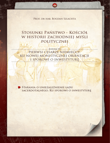 Starania o uniezależnienie ładu sacerdotalnego. Ku sporowi o inwestyturę. Po śmierci Wiktora II, papieża zasłużonego dla dzieła reformy Kościoła, podkreślającego, iż biskupów Rzymu legitymizuje nie cesarz ani lud wraz z duchowieństwem rzymskim, lecz sam Chrystus, zasłużonego także dla cesarstwa, bez jakiegokolwiek udziału rodziny cesarskiej wybrany został w wielkim pośpiechu Stefan IX ([X]; pontyfikat 1057-1058) – Fryderyk Lotaryński, opat Monte Cassino [gdzie próbował przeprowadzać reformy wzorowane na projekcie kluniackim], jeden ze współpracowników ściągniętych przez Leona IX do Rzymu, wspierany wcześniej także przez zmarłego Wiktora1. Fryderyk, cieszący się zaufaniem „stronnictwa reformatorskiego” działającego w Rzymie, poproszony został o wskazanie kandydata na tron Piotrowy: choć proponował na to stanowisko Hildebranda i Humberta, to on ostatecznie, zaproponowany z kolei przez Hildebranda, został wybrany przez rzymski lud i duchowieństwo bez ingerencji władców świeckich, ale też bez pytania o aprobatę cesarza Henryka IV, wbrew wciąż obowiązującej procedurze elekcyjnej ustalonej przez Henryka III w 1046 r.2. Jako Stefan IX(X), wspierany przez brata raczej niż cesarza i regentkę, nowy papież kontynuował dzieło reformy Kościoła, w szczególności zwołując kolejny synod (Rzym 1057) zajmujący się sprawami symonii i bezżenności księży, oraz podejmując próbę przywrócenia jedności Kościołów Wschodu i Zachodu zerwanej w 1054 r., a potrzebnej przecież w związku z ponownym niebezpieczeństwem stwarzanym przez Normanów. Jako papież wyniósł też do godności kardynalskiej Piotra Damianiego, już wspominanego kamedułę i pustelnika, który wkrótce odegra istotną rolę w batalii publicystycznej przeciwko pretensjom cesarskim (papież współpracował też z Humbertem i Hildebrandem, zatem ze środowiskiem zbudowanym już przez św. Leona IX wokół tronu Piotrowego, mającym na względzie dzieło reformy). Już wówczas pojawił się pomysł opracowania nowych zasad wyboru biskupów Rzymu, który usuwałby wpływ ludzi świeckich na elekcję; miał je przygotować Hildebrand, wysłany jednak rychło z misją do Niemiec. Przed śmiercią jeszcze, która nastąpiła ledwie kilka miesięcy po wyborze na Stolicę Piotrową, Stefan IX(X) wyruszył do swego brata Godfryda (zamierzał go koronować na cesarza), odbierając przed wyjazdem przyrzeczenie od duchowieństwa i ludu rzymskiego, że w razie jego śmierci nie wybiorą nowego biskupa przed powrotem do Rzymu Hildebranda3. Gdy jednak papież Stefan IX(X) zmarł we Florencji, wówczas łamiąc dane mu przyrzeczenie przywódcy tzw. stronnictwa antycesarskiego, przeciwnego kontynuowaniu dzieła reformowania Kościoła jako mającego pozarzymskie korzenie i w istocie realizującego zamierzenia Niemców, doprowadzili do wyboru Rzymianina, hrabiego Giovanniego Mincio di Tuscolo, który przyjął imię Benedykt X (ostatni papież z rodu Tuskulańczyków). Przez kilka miesięcy 1058 r. 1 A.M. Piazzoni, Historia wyborów papieży, s. 149. 2 K. Dopierała, Księga papieży, s. 144. Pominięcie cesarza wbrew normom ustalonym w 1046 r. autor ten ocenia jako „pierwszy krok ku wyzwoleniu się spod kurateli cesarskiej” (tamże, s. 145). Istotnie, był to pierwszy krok za panowania Henryka IV, z pewnością jednak nie pierwszy, gdy uwzględnimy wydarzenia z przeszłości, nawet tej bardziej odległej, a sięgającej drugiej połowy IX w. Był to krok pierwszy także w pewnym ważnym procesie, który będziemy wkrótce śledzić; być może przez fakt, iż został on przeprowadzony względnie skutecznie akcentuje się znaczenie zaniechania z 1057 r. Dodajmy jednak również, że kilka miesięcy po elekcji, papież postarał się o zatwierdzenie swego wyboru przez regentkę Agnieszkę (tamże, s. 145). 3 K. Dopierała, Księga papieży, s. 145. Dopierała dodaje, że za pontyfikatu Stefana IX(X) w Mediolanie szerzył się ruch, który cieszył się jego poparciem, choć zwykle uznawany on jest za jeden z coraz liczniejszych przejawów upowszechniania się stanowiska gnostyckiego w XI i następnych stuleciach. Ruch tzw. łachmaniarzy lub patarynów (pataria), o którym pomówimy jeszcze w innym miejscu, eksponował postulaty dobrowolnego ubóstwa, życia wspólnego i systematycznego nauczania, takiego jakie było w pierwotnym Kościele. Potępiali oni chciwość duchowieństwa i symonię, występowali przeciwko cesarzowi (tamże). ten antypapież, jednak koronowany, spotykał się z opozycją ze strony „partii reformatorskiej”, na czele której stali Piotr Damiani i kard. Humbert z Silva Candida. Piotr Damiani, który jako kardynał Ostii powinien był konsekrować nowo wybranego, odmówił udzielenia konsekracji4, wraz z Humbertem obłożył antypapieża anatemą i opuścił miasto5. Hildebrand wskazał wówczas arcybiskupa Florencji Gerharda (Gerarda) z Burgundii (Francuza zatem) jako kandydata na nowego biskupa Rzymu, który miałby zająć miejsce Benedykta X jako wybranego niekanonicznie (wbrew zobowiązaniu złożonemu papieżowi Stefanowi IX(X) i przez nielicznych duchownych. Przeciwnikom Benedykta X udało się uzyskać poparcie władców środkowej Italii, a także książąt Rzeszy niemieckiej i części kardynałów. W dniu 6 grudnia 1058 r. nie w Rzymie, lecz w Sienie dokonano wyboru Gerarda, który przyjął imię Mikołaj II (pontyfikat 1059-1061), i odbył intronizację w Wiecznym Mieście po ucieczce z niego Benedykta X w styczniu 10596. Synod w Sutri ogłosił następnie nieważność elekcji Benedykta X i jego depozycję; antypapież zbiegł do Kampanii, rychło jednak został pojmany przez Normanów i zmuszony do zwrotu insygniów papieskich (kilka miesięcy później, po powrocie do Rzymu, został uwięziony z rozkazu Hildebranda i zmuszony do zrzeczenia się godności papieskiej; w 1060 r. synod laterański ponowił jego depozycję). Pontyfikat Miko