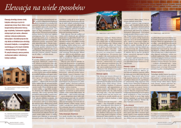 budynku odnoszące się do ich zewnętrznej strony (lica), które z racji bezpośredniej widoczności tworzą jego wizytówkę. Zachowanie względów estetycznych jest ważne, albowiem wybrany rodzaj jej wykończenia, kolorystyka i charakterystyczne dla niej detale architektoniczne określają tożsamość budynku, w szczególności wyróżniają go na tle innych obiektów i wkomponowują w tło krajobrazu. W zamyśle elewacja zawsze powinna zachowywać piękno i właściwe jej Tynki elewacyjne © DRYVIT funkcje użytkowe. Fot. 1 Zaprawa Lymestone imitująca na elewacji wygląd © ARCHIWUM AUTORA naturalnego piaskowca Fot. 2 Otynkowana elewacja budynku (prawdopodobnie jest to tynk maszynowy naniesiony na ścianę wykonaną z bloczków komórkowych, po utwardzeniu można go pokryć farbą elewacyjną) 30 KREATOR–PROJEKTY • 1/2010 W metodzie nakładania tynków (zwykłych/ tradycyjnych, szlachetnych i cienkowarstwowych) nałożona na powierzchnię ściany uplastyczniona masa po stwardnieniu tworzy trwale przylegającą do niej powłokę o pożądanych właściwościach. Tynki tradycyjne nakładane ręcznie i maszynowo tworzą wyprawy grubowarstwowe składające się ze zwykłych trójwarstwowych zapraw cementowo-wapiennych, gdzie warstwę pierwszą stanowi obrzut (szpryc), który pokrywa warstwa druga — narzut, na który — w zależności od koncepcji projektanta — nakłada się farbę elewacyjną,bądź szlichtę, względnie fakturuje, narzucając specjalnie dobraną zaprawę lub obrabiając jej powierzchnię z użyciem narzędzi. Obrzut wykonuje się z zaprawy bardzo rzadkiej, a po jego lekkim stwardnieniu i skropieniu wodą nakłada narzut i warstwę zamykającą. Obie warstwy zapewniają dobrą przyczepność tynku do podłoża, a warstwa zamykająca stanowi o końcowym efekcie wizualnym. Tynki tradycyjne nakładane są najczęściej jako tzw. tynki surowe, które można wykańczać farbami elewacyjnymi, nadawać im wybraną fakturę, albo traktować je jako podkład pod inne techniki elewacyjne (np. oblicowanie). Zmodyfikowane tego typu tynki obecne są w postaci gotowych zapraw tynkarskich. Ich zwiększona przyczepność do podłoża bardzo upraszcza technologię tynkowania, eliminuje konieczność nakładania obrzutki), gdyż warstwa narzutu spełnia również i tę funkcję. Ponieważ ręczne tynkowanie na rusztowaniach elewacyjnych nastręcza wiele kłopotów, jest dość czasochłonne, a zasięg ręki nie zawsze zapewnia jednorodność pokrycia dużych powierzchni i dostęp do miejsc trudnych, powszechnie przyjęło się stosować na elewacjach tynki nakładane maszynowo. Wadą tynków tradycyjnych jest podwyższona nasiąkliwość i podatność na brudzenie się, co w przypadku ich renowacji pociąga za sobą konieczność powtórnego tynkowania. Tynki tradycyjne służą jako podkład pod warstwy tynków szlachetnych, przy nakładaniu których używane są odpowiednie narzędzia i techniki. Wyróżnikami ich nazw są otrzymane powierzchnie zewnętrzne. Na przykład w metodzie nakrapiania zaprawą ściany z użyciem miotły lub specjalnego młynka uzyskuje się tzw. tynki nakrapiane o charakterystycznej chropowatej powierzchni. Poprzez wypłukiwanie części niestwardniałej powierzchni zaprawy uzyskuje się strukturę tynku zmywanego (kamyczkowego). Efektem użycia tzw. cykliny jest tynk cyklinowany, a pacy i pędzla — tynk gładzony. Wygląd takich tynków zależy od pomysłowości wykonawcy, użytych narzędzi i zainwestowanego czasu. Fabryczne suche mieszanki tynkarskie (zazwyczaj tynki dwuwarstwowe) są wygodniejsze od tradycyjnych, dają gwarancję jednorodności materiału (powtarzalność składu i proporcji zawartych składników), mają lepsze parametry techniczne, są trwalsze, dają większe możliwości kolorystyczne, wykluczają potrzebę wykonywania obrzutki, wreszcie są łatwiejsze w konserwacji (niektóre z nich są samozmywalne). Przed tynkowaniem zadane powierzchnie gruntuje się primerem (odpowiednim preparatem poprawiającym ich przyczepność do tynku), a następnie zgodnie z zaleceniami producenta kładzie się tynk podkładowy i tynk dekoracyjny stanowiący warstwę zewnętrzną. Tynki cienkowarstwowe, zwane również wyprawami pocienionymi są częścią systemów ocieplania murów (metody lekkiej-mokrej). Ich główne zadanie — oprócz wymiaru estetycznego — stanowi zabezpieczenie izolacji (wełny mineralnej/styropianu) przed wpływem czynników pogodowych. Nakładane są jednowarstwowo na siatkę i materiał ocieplający. Do ich zalet zalicza się: łatwość nakładania, szybkość wiązania, znaczną trwałość, wodoodporność, udarność (wytrzymałość na uderzenia), duże możliwości kolorystyczne i dekoracyjne (można przy nich stosować techniki specjalne jak przy tynkach szlachetnych). Farby elewacyjne (fasadowe) Są to przede wszystkim farby wapienne, cementowe, krzemianowe oraz polimerowe Fot. 3 Wygląd elewacji z cegły klinkierowej (silikonowe i emulsyjne). Rodzaj wybranej farby według zaleceń wymaga dostosowania jej do rodzaju tynku (np. farba krzemianowa do tynku krzemianowego). Farbami maluje się zarówno podłoża tynkowe, jak i betonowe. Ich główną cechą użytkową powinna być odporność na wilgoć i wodę, słońce i związki chemiczne zawarte w powietrzu i wodzie deszczowej oraz przebarwienia wynikające też z innych przyczyn. Ich stosowanie musi być zgodne z zaleceniami producentów farb; w szczególności przy malowaniu musi być zachowana odpowiednia temperatura otoczenia, wilgotność i nasłonecznienie oraz spełniony warunek całkowitego stwardnienia tynku. Elementy dekoracyjne z piaskowca, klinkieru, cegły wapienno-piaskowej przed zabrudzeniem i chłonięciem wody zabezpiecza się specjalnymi preparatami impregnacyjnymi. Elewacje ceglane Takie elewacje przy starannie dobranym materiale i nie mniej starannej pracy nadają budynkowi elegancji z racji naturalnego piękna cegieł dobranych do piękn
