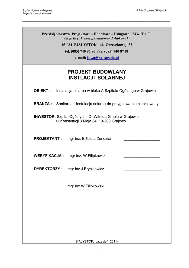 projekt budowlany instlacji solarnej