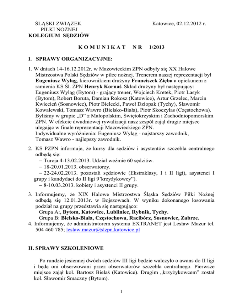 ŚLĄSKI ZWIĄZEK Katowice, 02.12.2012 r. PIŁKI NOŻNEJ