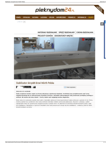 Stabilizator skrzydeł drzwi Würth Polska POKÓJ Lubię to! S K L E P SYPIALNIA 2016-02-24 KUCHNIA ŁAZIENKA DESIGN WYKOŃCZENIE PROMOCJE INFORMACJE SKLEPY 0 Kup w polecanym sklepie: Znajdź polecane: MATERIAŁY BUDOWLANE SPRZĘT BUDOWLANY CHEMIA BUDOWLANA PROJEKTY DOMÓW DEKORATORZY WNĘTRZ Stabilizator skrzydeł drzwi Würth Polska pieknydo… Poleć znajomemu 2016-02-22 14:59:00 Szafy wnękowe bardzo często są formą zabudowy użytkowej mieszkań. Architekci przy projektowaniu szaf coraz częściej decydują się na zastosowanie wysokich frontów, nierzadko zakrywających całą przestrzeń pomiędzy podłogą a sufitem. Ne można się temu dziwić - fronty takich szaf wglądają bardzo elegancko. Kiedy mamy do w ykonania w ysokie drzw i szafy z materiałów płytow ych drew nopochodnych (płyta w iórow a) o grubości 16 do 25mm, możemy spotkać się z problemem zbyt dużej w iotkości materiału i brakiem zachow ania płaszczyzny. Rysunek 1 pokazuje, z jakimi naprężeniami mamy do czynienia przy przygotow yw aniu w ysokich drzw i. W zależności od szerokości skrzydeł stosujemy jeden, bądź dw a stabilizatory. Najczęściej w typow ych skrzydłach drzw i szaf przesuw nych stosuje się dw a stabilizatory - zw łaszcza, jeżeli do takich skrzydeł doklejone są lustra. http://pieknydom24.pl/nowosc,6349,stabilizator-skrzydel-drzwi-wrth-polska 1/4 Stabilizator skrzydeł drzwi Würth Polska 2016-02-24 Ry s.1 Zapraszamy do obejrzenia filmu prezentującego montaż stabilizatorów : https://youtu.be/ke-yQkY6250 źródło: w urth/pięknydom24.pl zobacz więcej nowości Wurth Zobacz nowości pozostałych producentów w dziale: Meble Abra Absynth Dutchhouse Mebin Agata Meble Elitis Foppapedretti Meble Wójcik Szynaka Meble Antado Timoore Meblik VANK ATB Black Red White FormaZone Miretto Visby Forte MyRoom Vox Bydgoskie Meble Hettich Paged Wajnert Meble IKEA Pinio KAM RuckZuck Wirchomski Caramella Kler Klose SanPatrignano Wurth << powrót http://pieknydom24.pl/nowosc,6349,stabilizator-skrzydel-drzwi-wrth-polska 2/4 Stabilizator skrzydeł drzwi Würth Polska 2016-02-24 POKÓJ MEBLE MEBLE ŁÓŻKA SZAFY STOŁY I STOLIKI MEBLE WYPOCZYNKOWE SOFY FOTELE I PUFY KOMODY INNE TEKSTYLIA I POŚCIEL pieknydom24.pl INNE Szukaj w serwisie: Tw eets from a list by Informacje Branżow e pieknydom24.pl szukaj IKEA USA 1m @IKEAUSA Rise & shine! Open the curtains to let light in & help yourself w ake up. Find more ideas: bit.ly/1VlhFxi Duravit @Duravit LIKO NOE - architectural #landmark featuring natural thermal stabilization #DuravitSpotted goo.gl/NHUxdd pic.tw itter.com/0Gf46YFH3a http://pieknydom24.pl/nowosc,6349,stabilizator-skrzydel-drzwi-wrth-polska 55m 3/4 Stabilizator skrzydeł drzwi Würth Polska 2016-02-24 zobacz wszystkich producentów W ramach naszej witryny stosujemy pliki cookies w celu świadczenia Państwu usług na najwyższym poziomie, w tym w sposób dostosowany do indywidualnych potrzeb. Korzystanie z witryny bez zmiany ustaw dotyczących cookies oznacza, że będą one zamieszczane w Państwa urządzeniu końcowym. Mogą Państwo dokonać w każdym czasie zmiany ustawień dotyczących cookies. Więcej szczegółów w naszej Cookies". POKÓJ :: SYPIA LNIA :: KUCHNIA :: ŁA ZIENKA :: WIA DOMOŚCI :: WYDA RZENIA :: NA GRODY :: PROMOCJE :: KA TA LOGI :: PRODUCENCI :: Rozumiem, nieKONTA pokazujKTwięcej tej informacji SKLEPY :: RSS :: RSS Copyright © pieknydom24.pl 2016, Wszelkie prawa zastrzeżone, wykonanie: skyagency.pl http://pieknydom24.pl/nowosc,6349,stabilizator-skrzydel-drzwi-wrth-polska 4/4