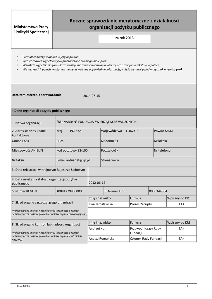 sprawozdanie2013 - BERNARDYN Fundacja Zwierząt Skrzywdzonych