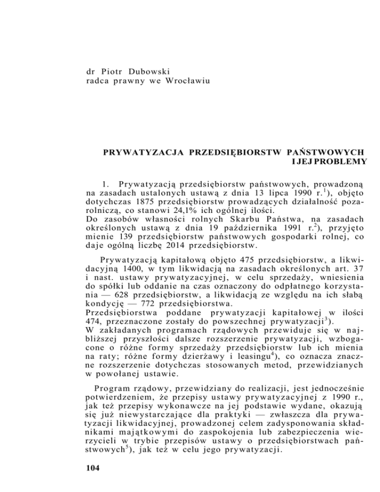 dr Piotr Dubowski radca prawny we Wrocławiu PRYWATYZACJA