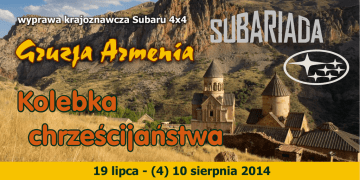 wyprawa krajoznawcza Subaru 4x4 Gruzja Armenia Kolebka 19 lipca - (4) 10 sierpnia 2014 Dzień 1-3 Przejazd z Polski do Gruzji (Kraków - Batumi 3000 km). Trasa przez Słowację, Węgry, Serbię, Bułgarię, Turcję. Dzień 4 (1) 280 km Dzień 5 (2) 200 km Przejazd z Batumi górską drogą przez przełącz Goderdzi Skalne miasto Vardzia Nocleg w Górach Samsari Wjeżdżamy do Armenii. Wodospad Trahkan Przejazd pod Aragats, najwyższy szczyt Armenii. Ruiny zamku i monastyru Amberd 80 km Dzień 6 (3) Echmiadzin – duchowe centrum Armenii (UNESCO) Erewań, zwiedzianie m.in. Muzeum Manuskryptów Monastyr Khor Virap położony pod Araratem Dzień 7 (4) 100 km Wjazd nad jezioro Kari Lake (3190m n.p.m.) pod Aragats Ruiny Katedry Zwartnoc (UNESCO). Przyjazd do Erevania. Nocleg w hostelu. 60 km Dzień 8 (5) Wąwóz z formacjami bazaltowymi w Garni Góry Geghama (Azhdahak) Świątynia słońca w Garni (I w n.e.) Monastyr Geghard (UNESCO) Nocleg nad jeziorem w górach (3200 m n.p.m.) 150 km Dzień 9 (6) Góry Geghama (Azhdahak) Wjazd na wulkan Armaghan Droga przez przełęcz Selim Selim Karawanseraj - najstarszy karawanseraj w Armenii (XIV w.) Winiarnia w Areni Monastyr Noravank (XIII w.) Dzień 10 (7) 150 km Dzień 11 (8) 340 km Wodospad Sharki Megality Zorac Karer Petroglify nad jeziorem (3270 m n.p.m.) Monastyr Tatev z IX w. (UNESCO) i przejazd najdłuższą na świecie kolejką linową Wings of Tatev Średniowieczny cmentarz w Noratus Monastyr Sevan (IX w.) Nocleg w hotelu w Sevan Dzień 13 (10) 200 km Dzień 12 (9) 270 km Haghpat - monastyr z X w. (UNESCO) Przejazd do Gruzji Skalne miasto i monastyr David Gareji (VI w.) Ekipa „dziesięciodniowa” odjeżdża i udaje się do Batumi (450 km). Pozostali udają się w Kaukaz do Omalo i Dartlo Dzień 14 (11) 200 km Dzień 15 (12) 20 km Monastyr Alaverdi (XI w.) Piwnica winna Alex Shaloshvili (degustacja) Tbilisi Przejazd do Mtskhety. Kościół Sveti Cchoweli (XI w.) – gruziński „Watykan” Przyjazd do Tbilisi. Nocleg w hostelu. Monastyr Jvari (VI w.) Nocleg w pensjonacie w Mtskhetcie Dzień 16 (13) 320 km Dzień 17 (14) 80 km Monastyr Gelati z XII w. (UNESCO) Droga przez Kaukaz do Uszguli. Górna Swanetia. Droga w kierunku Lentechi Dzień 18 (15) 40 km Dzień 19 (16) 250 km Droga Uszguli - Mestia. Górna Swanetia. Mestia (UNESCO) Przejazd z Kaukazu nad Morze Czarne. Nocleg na plaży koło Batumi. Spacer pod Lodowiec Chaladi Dzień 20-23 Żegnamy Gruzję i udajemy się w drogę powrotną do Polski przez Turcję. Założony program może ulec zmianom w zależności od pogody i innych warunków.