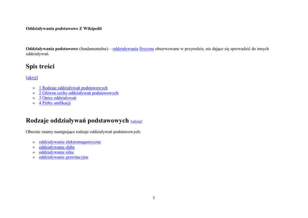 Spis treści Rodzaje oddziaływań podstawowych [edytuj]