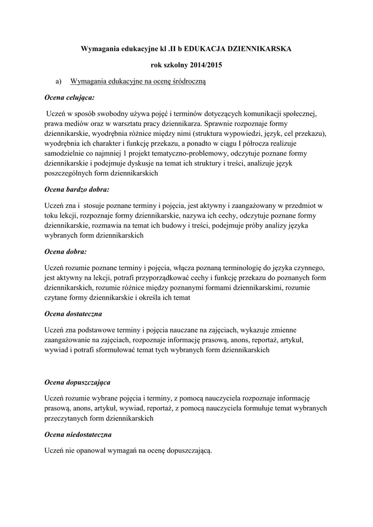 Wymagania edukacyjne kl .II b EDUKACJA DZIENNIKARSKA rok