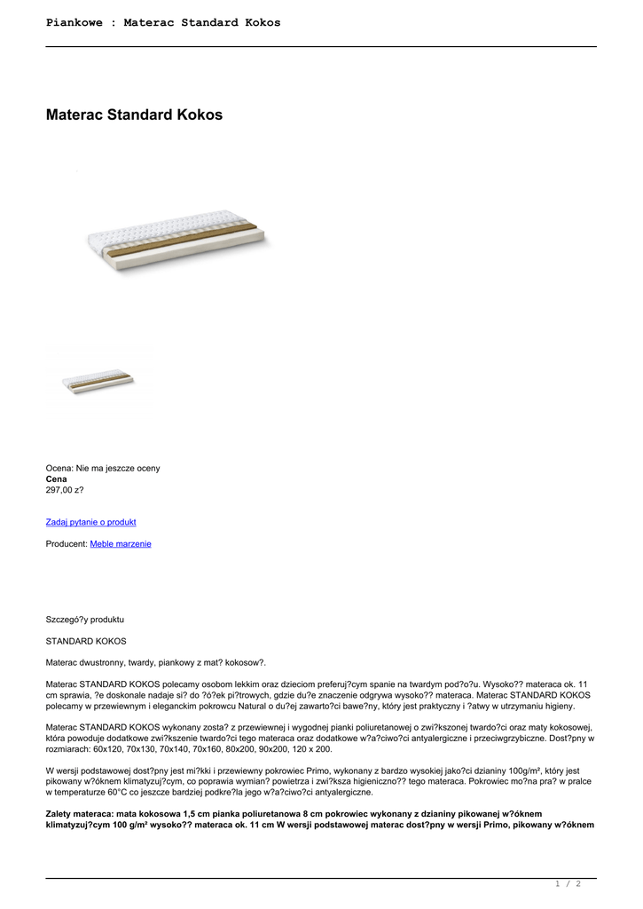 Materace : Materac Standard Kokos