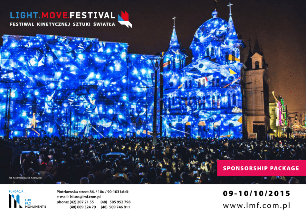 S P O N S O R S H I P PAC K AGE fot. Kaczmarkiewicz_Kozłowksi Piotrkowska street 86, / 10u / 90-103 Łódź e-mail: [email protected] phone: (42) 207 21 55 (48) 505 952 798 (48) 609 324 79 (48) 509 746 811 09-10/10/2015 w w w. l m f. c o m . p l GUI D E L I N E S LIGHT.MOVE.FESTIVAL.ŁÓDŹ - SPONSORSHIP PACKAGE LIGHT TURNS THE ECONOMY ON ! The Light Festivals are great tool of promotion what is already recognized by organizers and partners of such events worldwide. In 2014 the Advertising Value Equivalency of Festiwal reached 856,829,00 PLN STRATEGIC AIMS: Creation of open artistic and cultural event carried on the highest level. Becoming the flag international event, placing Łódź at the list of Light Festivals worldwide. Exposure of cultural heritage and presentation of creative art works by implementation of artistic and cultural projects based on the medium of light. BENEFITS OF BECOMING THE PARTNER / SPONSOR OF FESTIVAL Possibility of reaching large and diversified audience through the different channels of communication used as the tools of marketing and promotional campaign. Sponsoring of culture is prestigious. Supporting the artistic and cultural events is an act of getting involved in the creation of social potential and spreading the free access to the culture. Creation of the company image by sponsoring the culture gives the possibility of spreading positive social communication, brings the satisfaction and ennoblement. Supporting the artistic initiatives by involved Patrons of culture is a chance to draw the positive associations, symbols and solidify the brand in social awareness. FESTIWAL KINETYCZNEJ SZTUKI ŚWIATŁA fot. Kosma Nykiel WWW.LMF.COM.PL fot. Piotr Kamionka [email protected] UL.PIOTRKOWSKA 86, LOK. 10u 90-103 ŁÓDŹ fot. Kaczmarkiewicz_Kozłowksi STATISTICS LIGHT.MOVE.FESTIVAL.ŁÓDŹ - SPONSORSHIP PACKAGE PROGRAM LMF 2014 W LICZBACH: FREKWENCJA LMF 2014: ponad 350 000 gości w terenie festiwalowym w czasie IV edycji LMF; 40 artystyczno - architektonicznych iluminacji budynków; ponad 100 artystów i light designerów z Polski oraz z zagranicy w tym 18 koncertów w nietypowych aranżacjach; z Francji, Niemiec, Węgier oraz Wielkiej Brytanii; ponad 30 pokazów laserowych; 7 projekcji wielkoformatowych na 10 budynkach w tym OSIĄGNIĘCIA ONLINE LMF ŁÓDŹ 2014: 4,5 millionów wyszukań w internecie; 4 w technologi mapping 2D / 3D; 17 000 aktywnych fanów na facebooku; 15 świetlnych instalacji artystycznych; ponad 6 000 zdjęć otagowanych #lightmovefestival; 1 konferencja naukowa; prawie 6 000 filmów z IV edycji udostępnionych na YouTube; MEDIA ekwiwalent reklamowy w 2014 wyniósł 856,829,00 zł; 223 000 odwiedzających oficjalną stronę festiwalu; FESTIWAL KINETYCZNEJ SZTUKI ŚWIATŁA fot: Dominik Kędzia WWW.LMF.COM.PL [email protected] UL.PIOTRKOWSKA 86, LOK. 10u 90-103 ŁÓDŹ CONCERTS LIGHT.MOVE.FESTIVAL.ŁÓDŹ - SPONSORSHIP PACKAGE fot: Kaczmarkiewicz_Kozłowski FESTIWAL KINETYCZNEJ SZTUKI ŚWIATŁA fot: Kaczmarkiewicz_Kozłowski WWW.LMF.COM.PL [email protected] UL.PIOTRKOWSKA 86, LOK. 10u 90-103 ŁÓDŹ ARCHITCTURAL ILLUMINATIONS LIGHT.MOVE.FESTIVAL.ŁÓDŹ - SPONSORSHIP PACKAGE AR TI S T I C A RCHI TE C TUR A L I LLUM IN AT ION S • 40 tenement houses illuminated with use of energy saving light sources by PHILIPS. w technologi LED. fot. Piotr Kamionka fot. Kaczmarkiewicz_Kozłowski FESTIWAL KINETYCZNEJ SZTUKI ŚWIATŁA fot. Kaczmarkiewicz_Kozłowski WWW.LMF.COM.PL [email protected] fot. Kosma Nykiel UL.PIOTRKOWSKA 86, LOK. 10u 90-103 ŁÓDŹ LIGHT.MOVE.FESTIVAL.ŁÓDŹ - PAKIET SPONSORSKI fot. Kosma Nykiel fot. Kaczmarkiewicz_Kozłowski fot. Kaczmarkiewicz_Kozłowski COOPERATION fot. Łukasz Czarnecki FESTIWAL KINETYCZNEJ SZTUKI ŚWIATŁA WWW.LMF.COM.PL [email protected] fot. Łukasz Czarnecki UL.PIOTRKOWSKA 86, LOK. 10u 90-103 ŁÓDŹ T I T U L A R PA R T N E R LIGHT.MOVE.FESTIVAL.ŁÓDŹ - SPONSORSHIP PACKAGE TITULAR PARTNER OF FESTIVAL Titular Partner of Festival is the unique form of promotion for the company. The brand becomes connected with the festival by its name and is automatically associated with the event, what brings positive influence on the company image. This status can be granted after supporting the festival with agreed funds and signing the agreement for long term cooperation. Signing this type of partnership agreement guarantees presence in every advertisements, promotional and marketing materials used by organizer during the promotional campaign. fot. Tomasz Brodeckii FESTIWAL KINETYCZNEJ SZTUKI ŚWIATŁA WWW.LMF.COM.PL [email protected] UL.PIOTRKOWSKA 86, LOK. 10u 90-103 ŁÓDŹ S T R AT E G I C P A R T N E R LIGHT.MOVE.FESTIVAL.ŁÓDŹ - SPONSORSHIP PACKAGE PARTNER STRATEGICZNY This status can be granted after supporting the festival with the amount of 400 000,00 PLN or providing both financial and asset contribution of equal value. 1. 2. 3. 4. 5. 6. 7. 8. 9. 10. 11. 12. 13. 14. 15. 16. 17. 18. 19. 20. 21. 22. Displaying Partner’s logo at the façade of building after the audiovisual projections. Product placement in the body of projection based on the agreement with organizer. Presentation of effectiveness report. Dedicated promotional campaign pointing the fact of Partner’s involvement in the event. Placing Partner’s logo on festival press wall and roll ups during grand opening of festival. Placing Partner’s logo on the official web page of festival cross-linked with indicated web page. Placing Partner’s logo in marketing materials (printed and online) informing about the Festival and additional events (leaflets, posters, brochures, festival programs, invitations). Placing Partner’s logo on the Citylights in Łódź and at the public transport transfer stops. Placing Partner’s logo on the posters exposed in the City Information Centres. Placing Partner’s logo in the promo displayed at the screens in public transport. Placing Partner’s logo in the online newsletter emailed before the festival. Possibi