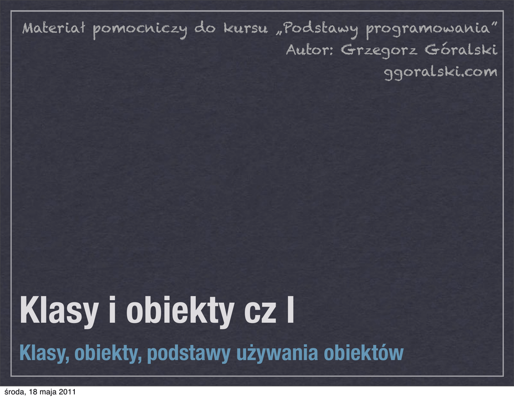 Klasy i obiekty cz I