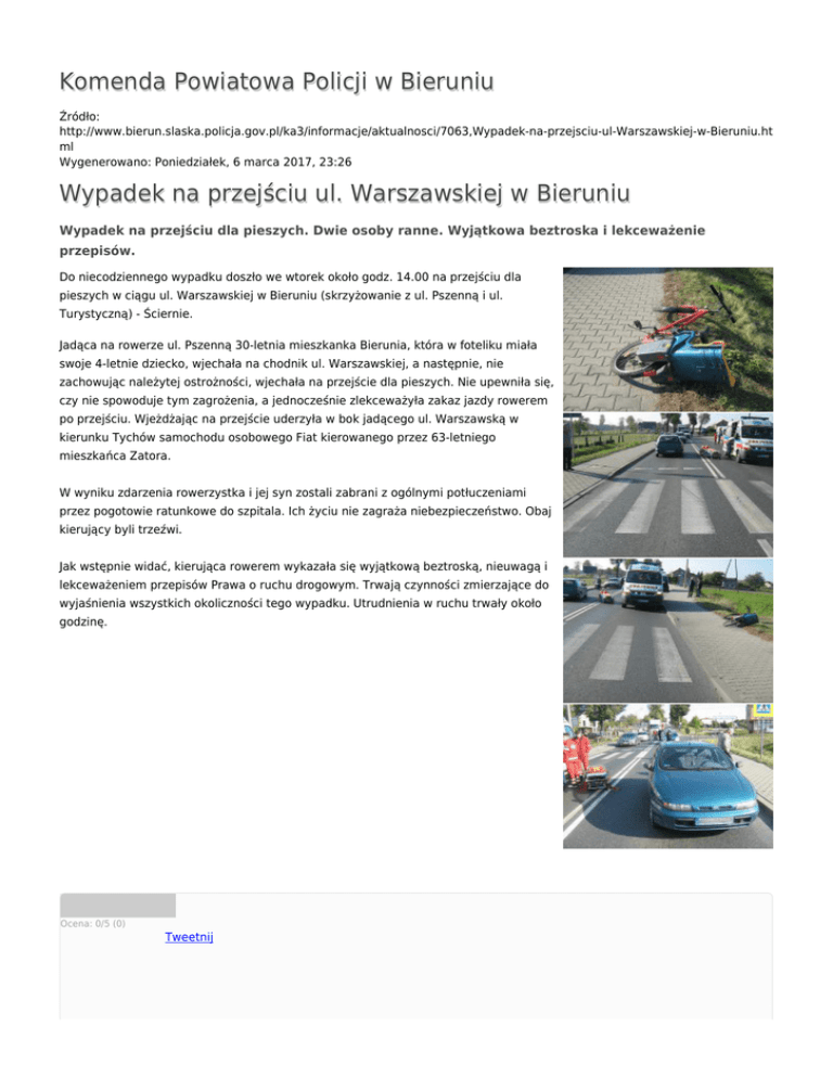 Komenda Powiatowa Policji w Bieruniu Wypadek na przejściu ul
