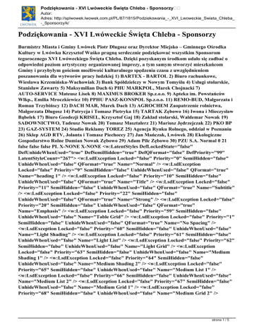 Podziękowania - XVI Lwóweckie Święta Chleba - Sponsorzy