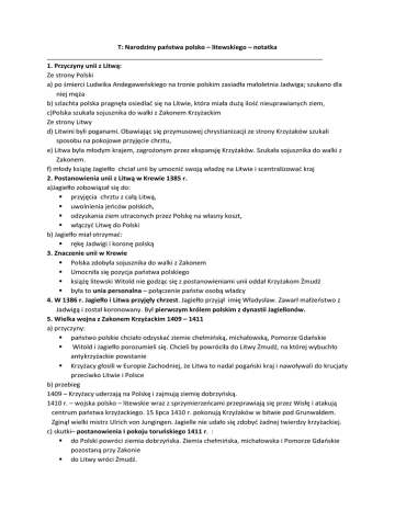 T: Narodziny paostwa polsko – litewskiego – notatka